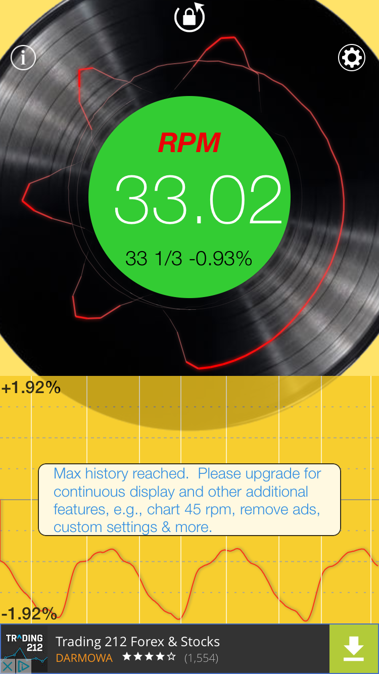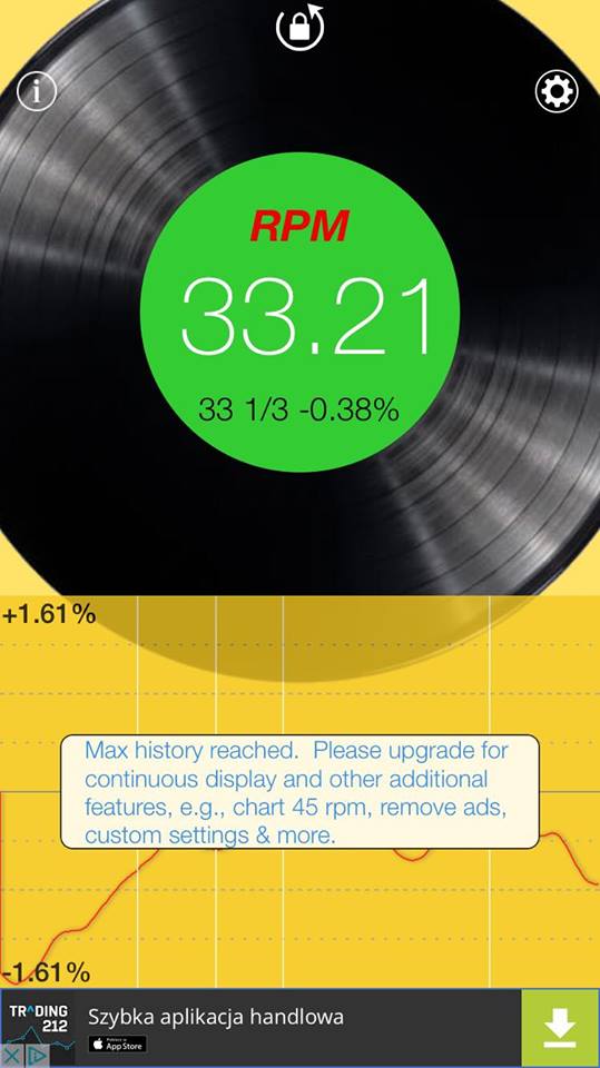 Na stroboskopie (takim dokladanym na macie filcowej) paski pozornie na oko stoją na obu gramofonach.