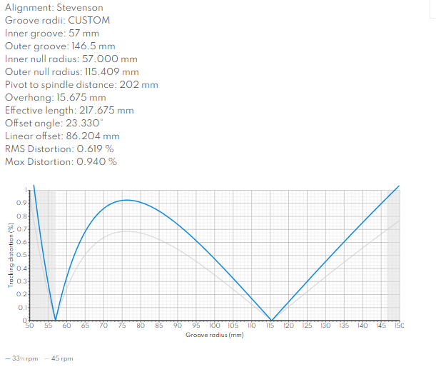 Jak dla mnie poświęciłeś pół płyty gdzie muzyka jest zawsze i na pewno, dla kilku płyt które w ogóle do tego 57mm dochodzą. Nie sądzę żebyś na końcu usłyszał różnicę pomiędzy Twoim ustawieniem a poprawnym Stevensonem.