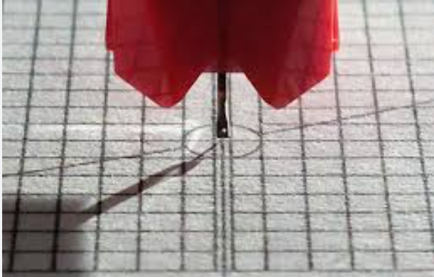 Musisz się ustawić idealnie w linii na kartce na której stoi igła i patrzeć czy się pokrywa. Lupka albo telefon są przydatne, tylko znowu w wypadku telefonu obiektyw trzeba mieć na osi a nie z boku.