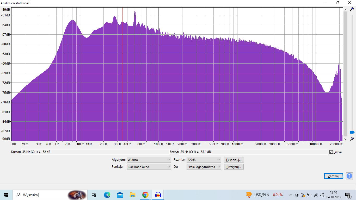 Pomiar zrobiony przy użyciu płyty testowej (white noise) z działającym tłumieniem (KAB) i bez. Dodałem podpisy pod zrzuty, ale chyba nie trzeba