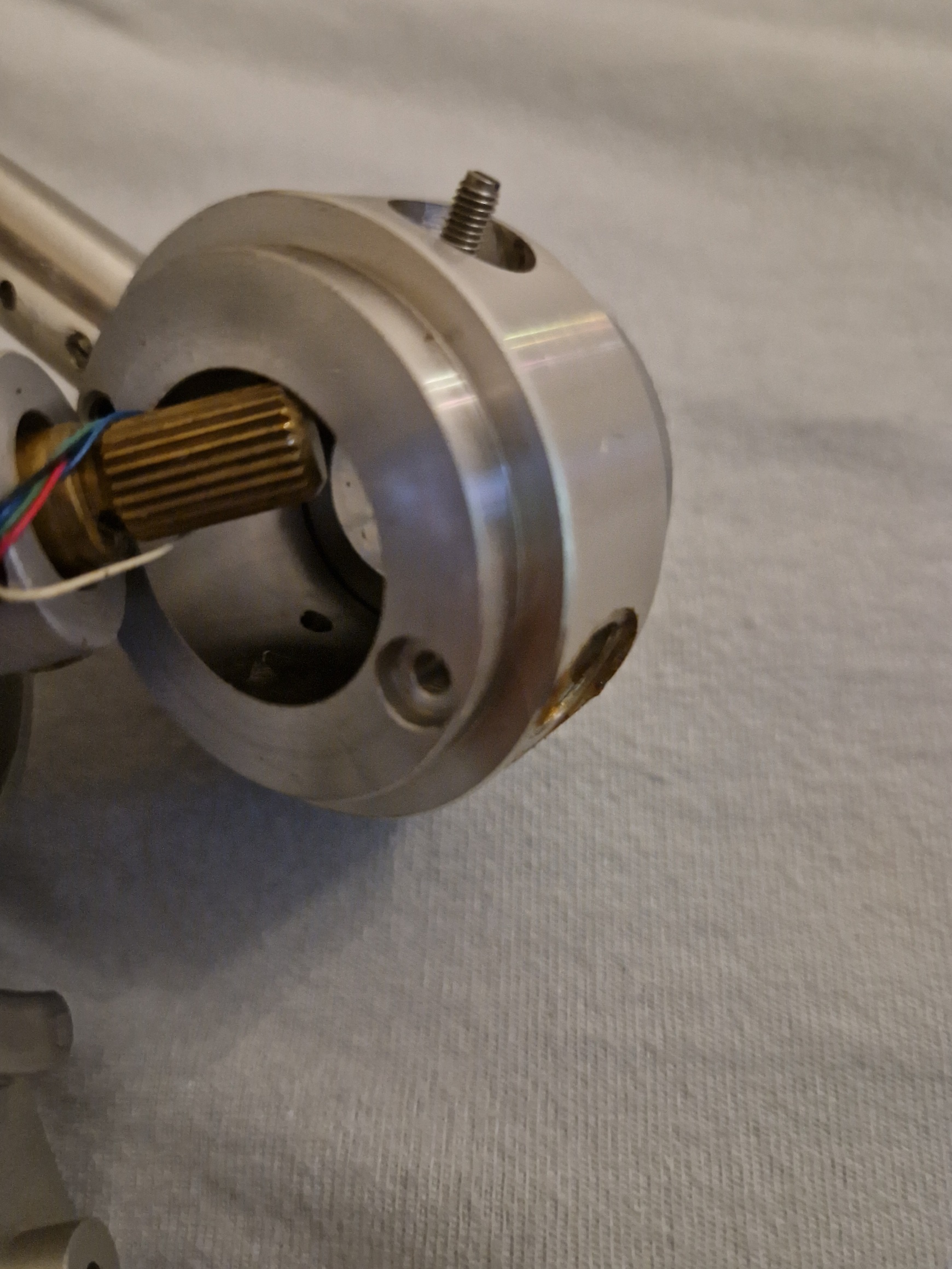 Aluminiowy trzpien przeciwwagi w pl- 30,50,70 poprzez nakładke z tworzywa jest przykręcany od spodu do elementu "wahladliwego"wieży.Przy konserwacji wieży na tą plastikową nakładkę trzeba uwarzac bo czesto się rozwala w pył dlatego się" buja".Element łatwy do zastąpienia... po odkreceniu śrubki trzpień wychodzi dosyć łatwo...