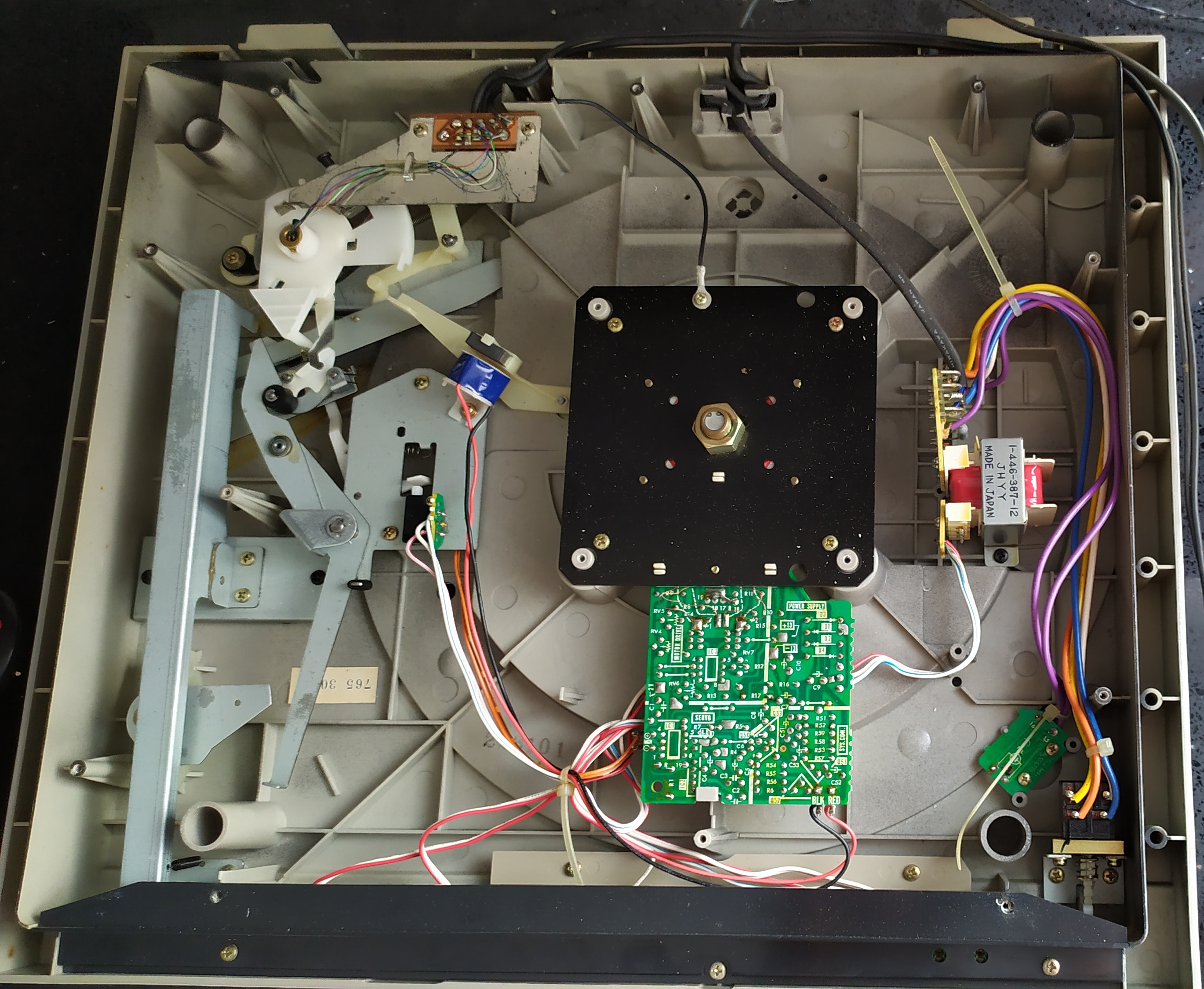 Nie jest ten kabel przerwany , napewno, widać jak zakręca przy kablach RCA i jest przylutowany do płytki. Lut prawy górny z brzegu.