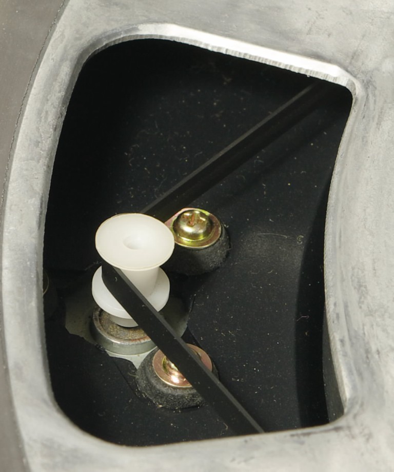 Nie ma tam w środku żadnej śrubki, więc pewnie coś się tam ukrywa, co zwolniłoby blokadę. W razie jakby zaszła potrzeba będzie trzeba skombinować jakiegoś motylka, który by tam pasował.