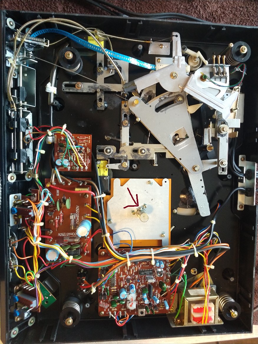 Kolejna sprawa smarowanie osi talerza na chłopski rozum muszę odkręcić tą tuleję i od spodu mam dojście do osi i łożyska - dobrze myślę ?może ustabilizują się obroty ,starałem się też psiknąć(kontaktem) na potencjometry pitch oraz włącznik kwarc ,zobaczę jaki da to efekt.Niemniej oś i łożysko to kolejny krok.