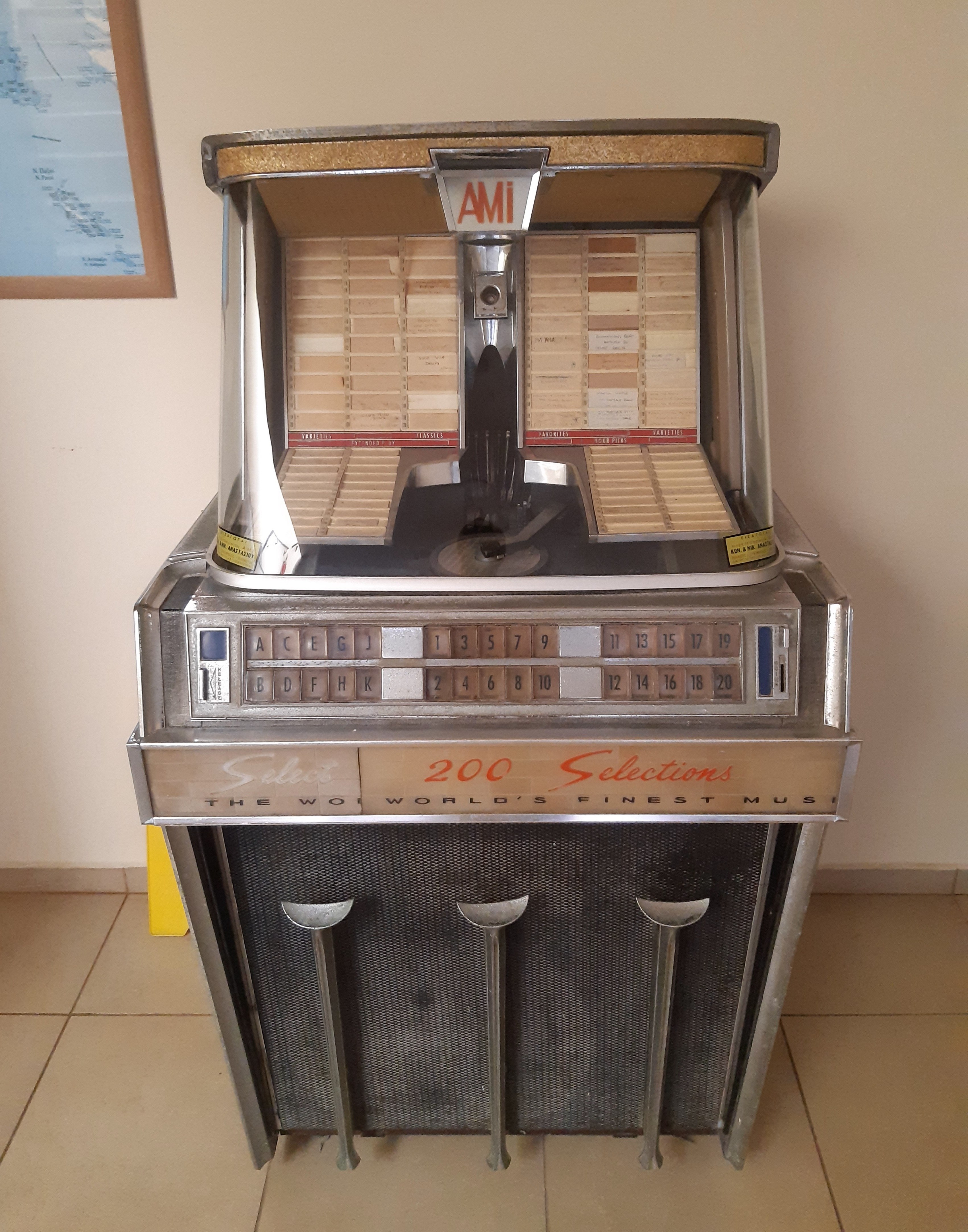 Spotkana w greckiej restauracji, używana jeszcze około 10-15 lat temu. Informacja od właścicielki. Ale niestety padła lampa we wzmacniaczu. Także czeka na reanimację :)