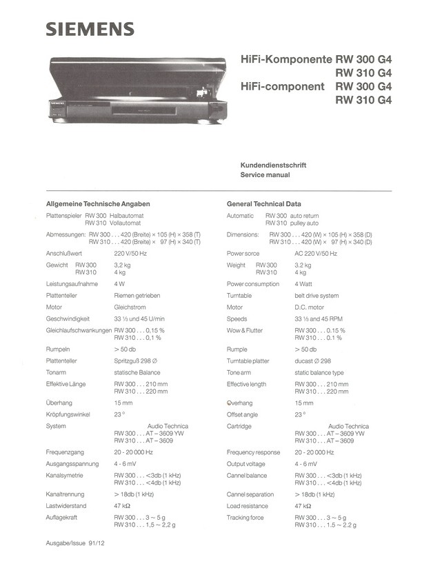 Siemens RW 300 nacisk ramienia 3-5 g