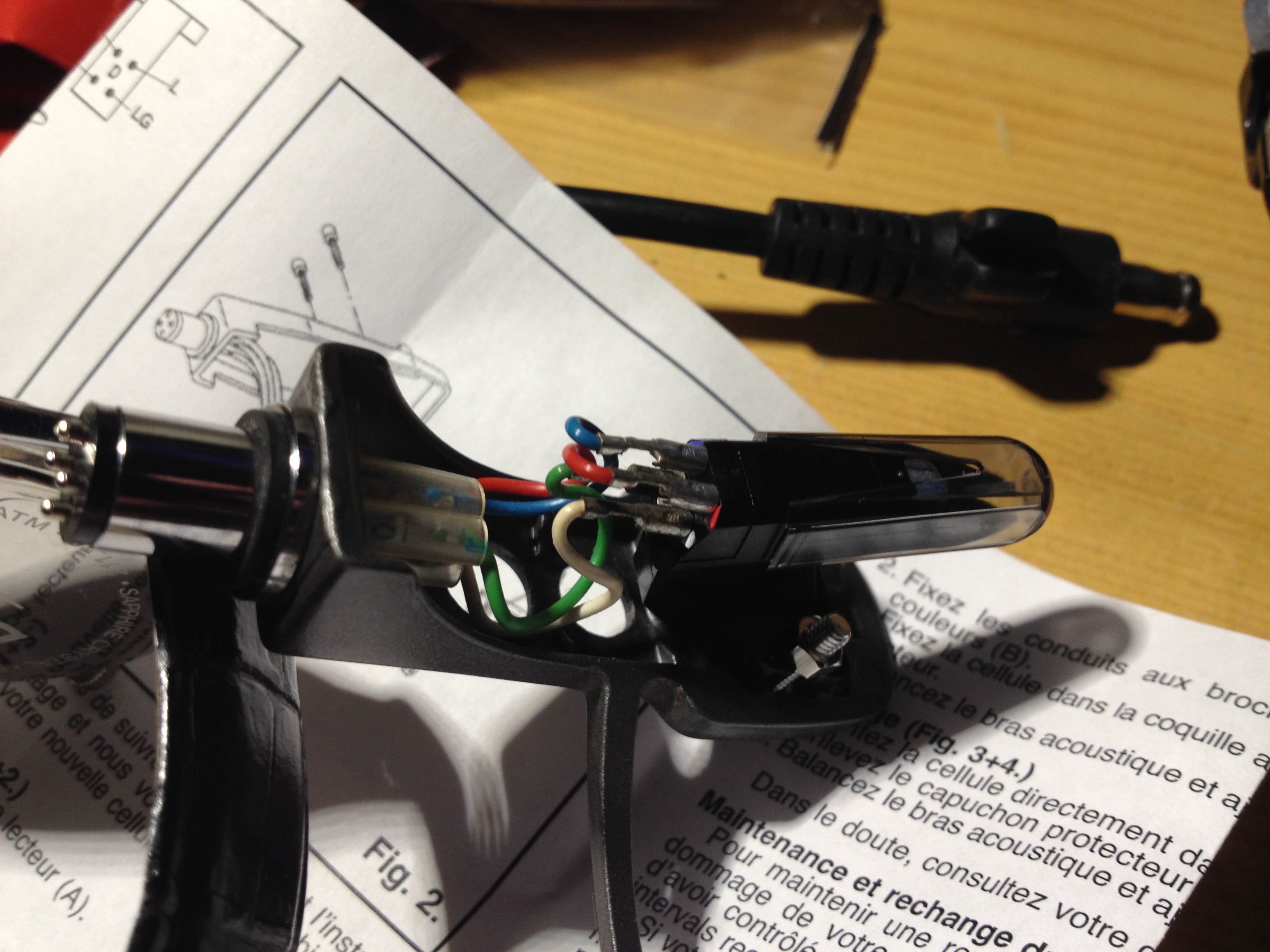 Na poniższych zdjęciach widać jak podłączyłem to narazie, (kolor do koloru) dodaje również zdjęcie instrukcji z wkładki z oznaczeniami przewodów oraz zdjęcie poprzedniej wkładki.(stanton 500v3 to poprzednia, reloop nowa)