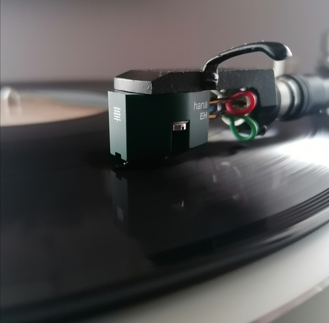 Hana EH wysokonapieciowa wkładka MC, obciążenie jak przy MM 47 kOhm. Dopiero się wygrzewa ale jest to cieplejsze granie środkiem pasma przy czym wokale brzmią naturalne, góra czysta bez ostrości gitara czy fortepiany brzmią pięknie. Bas raczej rozlany niż punktowy. Polecam