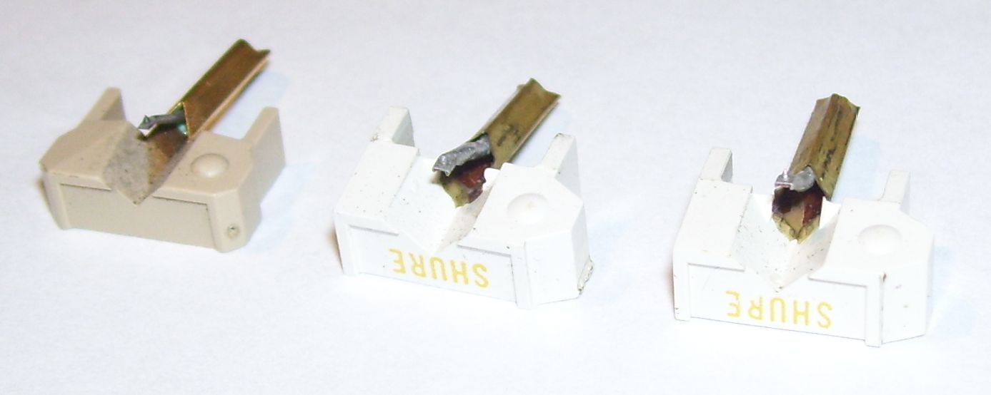 Wpadły mi rączki trzy używane igły. Dwie białe Shure chyba oryginalne przy tym jedna z nich ma literkę Y druga nic.