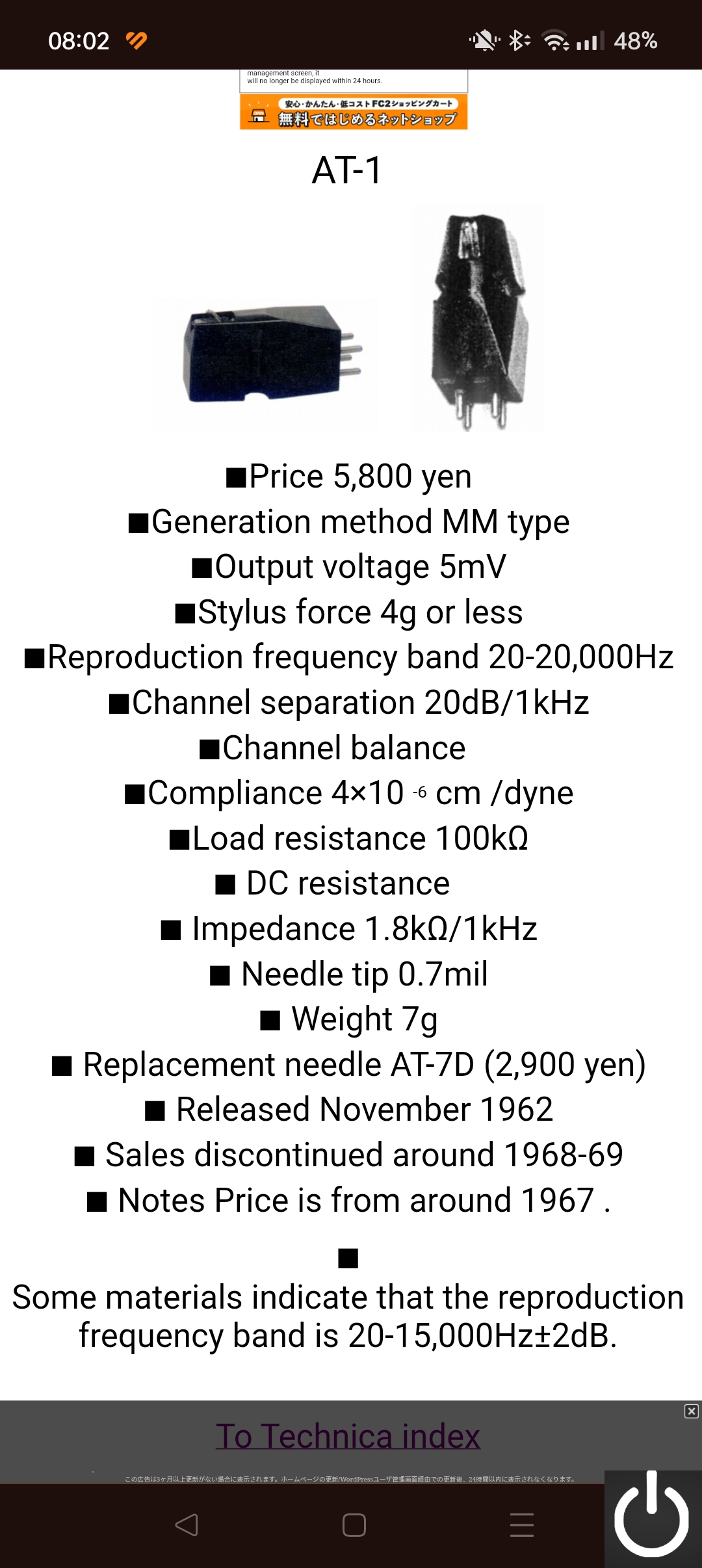 Nie wiem czy się nie mylę ale wygląda na AT-1 czyli pierwszą produkowaną wkładkę Audio -techniki z 1962 roku.