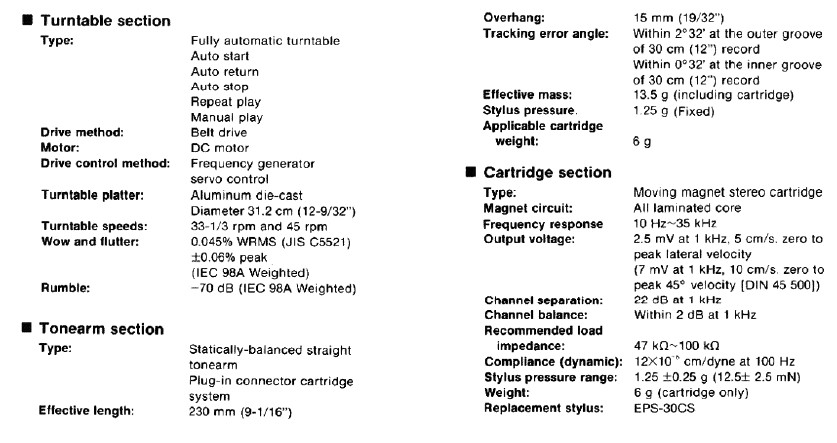 PS. Regulowane parametry w tej instrukcji są podawane tylko w ogólnych parametrach roboczych wkładki, a nie w samym gramofnie. Tam jest "fixed"