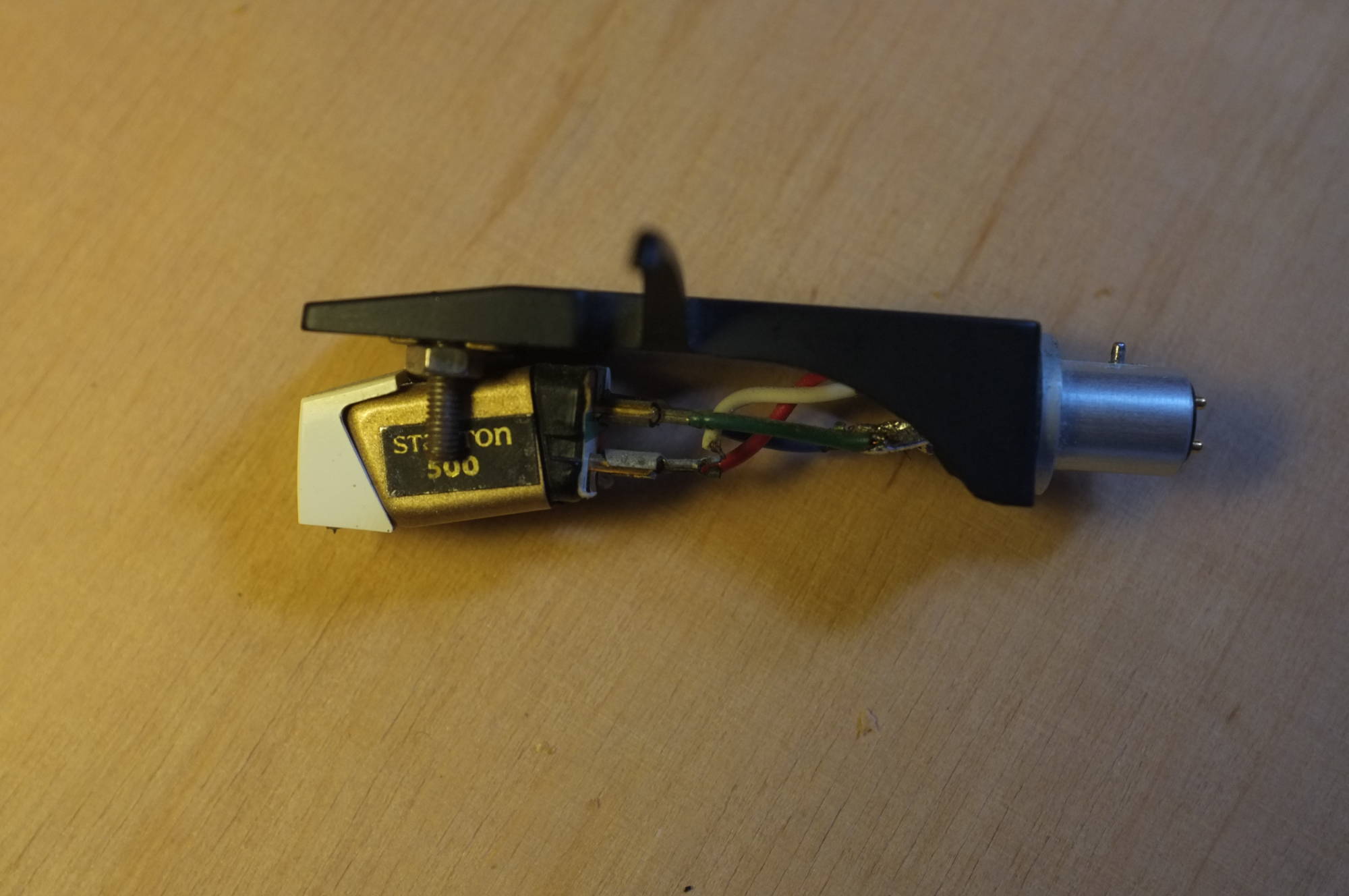 Przy okazji, mam jeszcze jedną wkładkę - Stanton 500 (na zdjęciu w headshellu Technicsa) - również z igłą do wymiany. Czy ona będzie pasować do gramofonu JVC L-A21? Jest zamocowana w Sherwoodzie PM-8550, tam jest zupełnie inne ramię niż w malutkim JVC. Mam te dwie wkładki, chciałbym jedną z nich wykorzystać w moim JVC, słucham muzyki, nie zajmuję się DJką.