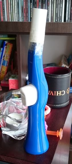 Lufę dokleiłem do reszty Oli za pomocą taśmy klejącej. Pewnie są lepsze sposoby ale ja już nie szukałem. I tak oto wygląda skończone działo antystatyczne: