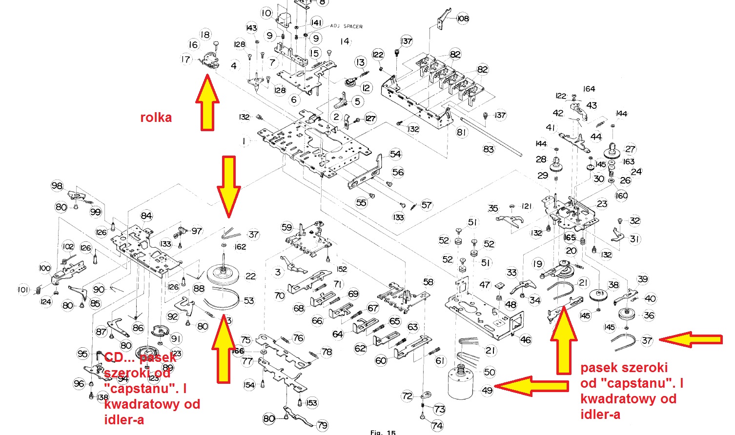 Trzeba szukać także po numerach z serwisówki, które podałem. Najważniejsze są paski główny i od idler-a.