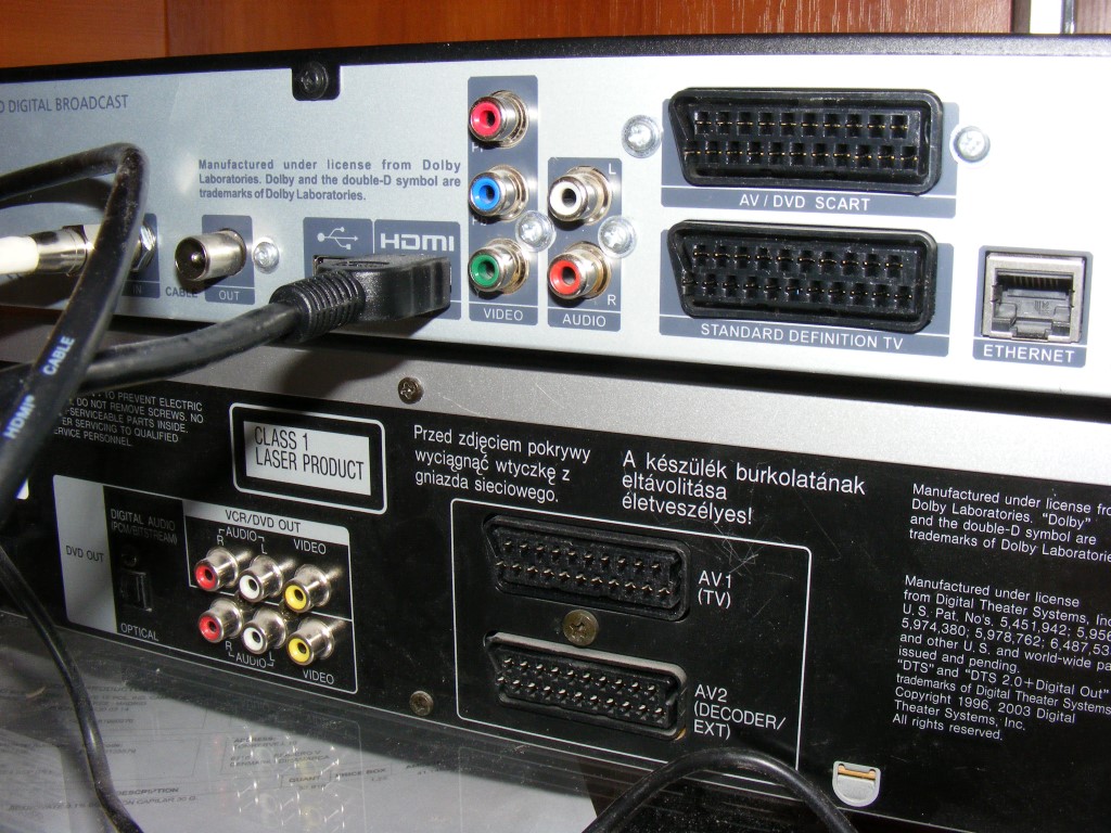 Przy poprzednim telewizorze starszego typu korzystałem ze złącza SCART, przez które do telewizora podłączony był dekoder a do dekodera magnetowid i wszystko chodziło jak trzeba. Teraz telewizor i dekoder połączone są ze sobą przez HDMI, za to za cholerę nie mogę skutecznie wpiąć do tego zestawu magnetowidu. Telewizor nie ma niestety euro złącza więc spróbowałem bezpośrednio do niego podłączyć magnetowid za pomocą kabla SCART - CINCH. Dało to połowiczny efekt bo DVD zadziałało, ale niestety z dość dupowatą jakością :| VHS w ogóle nie działał. Pewnie dlatego, że telewizor nie jest już wyposażony w emulator VCR.