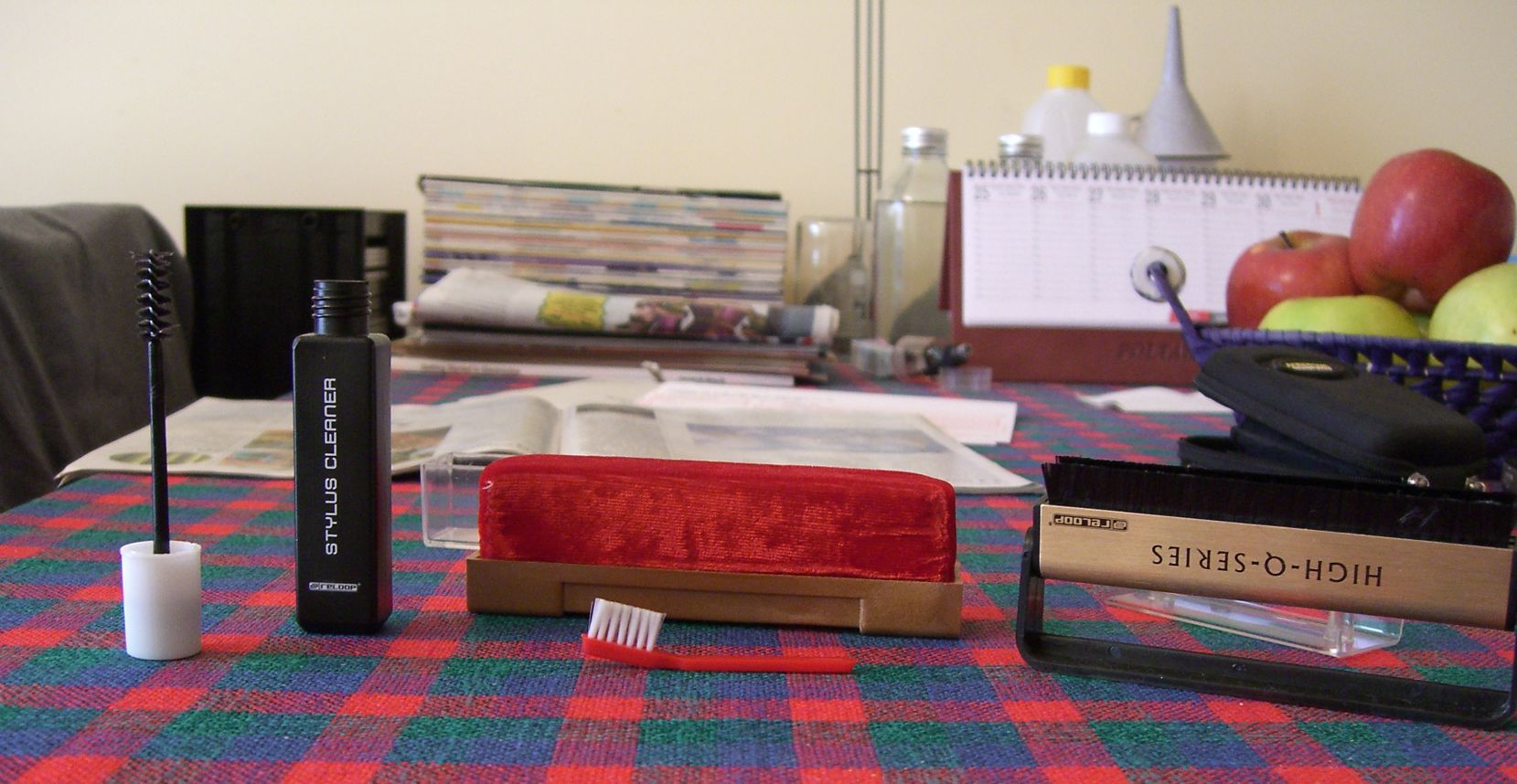 - Stosujemy specjalne szczotki. Nieodpowiednie mogą okazać się, często proponowane, szczotki karbonowe. Ich właściwości antystatyczne bywają niezadowalające, włókna dość szybko się deformują, a wypadające włoski mogą utknąć w rowkach płyty. Najlepsze szczotki są wykonane z welwetu, weluru i aksamitu. W najgorszym wypadku stosujemy mikrofibrę.