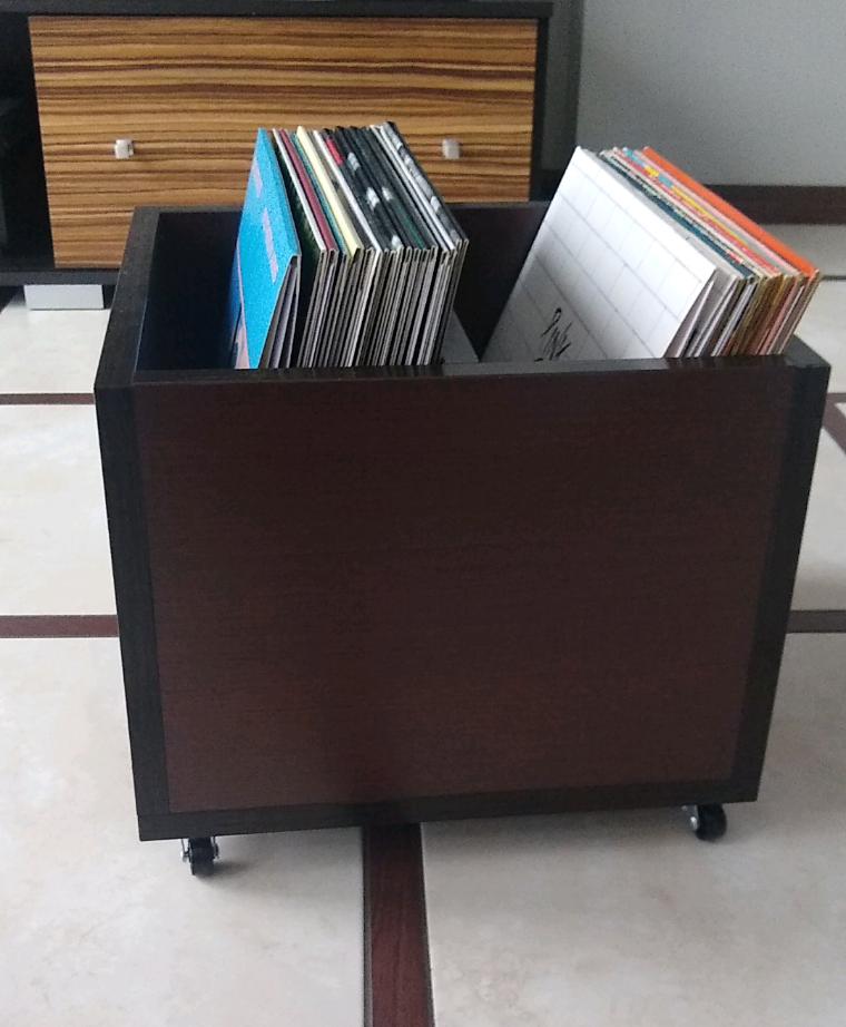 Ja na szybki start przygody z winylami zmontowałem sobie taką mobilną szafkę na kółkach.