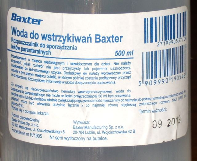 Przejdę się po swoich aptekach i zobaczę czy też uda mi się lokalnie nabyć taką większą butlę "Aqua pro iniectione"