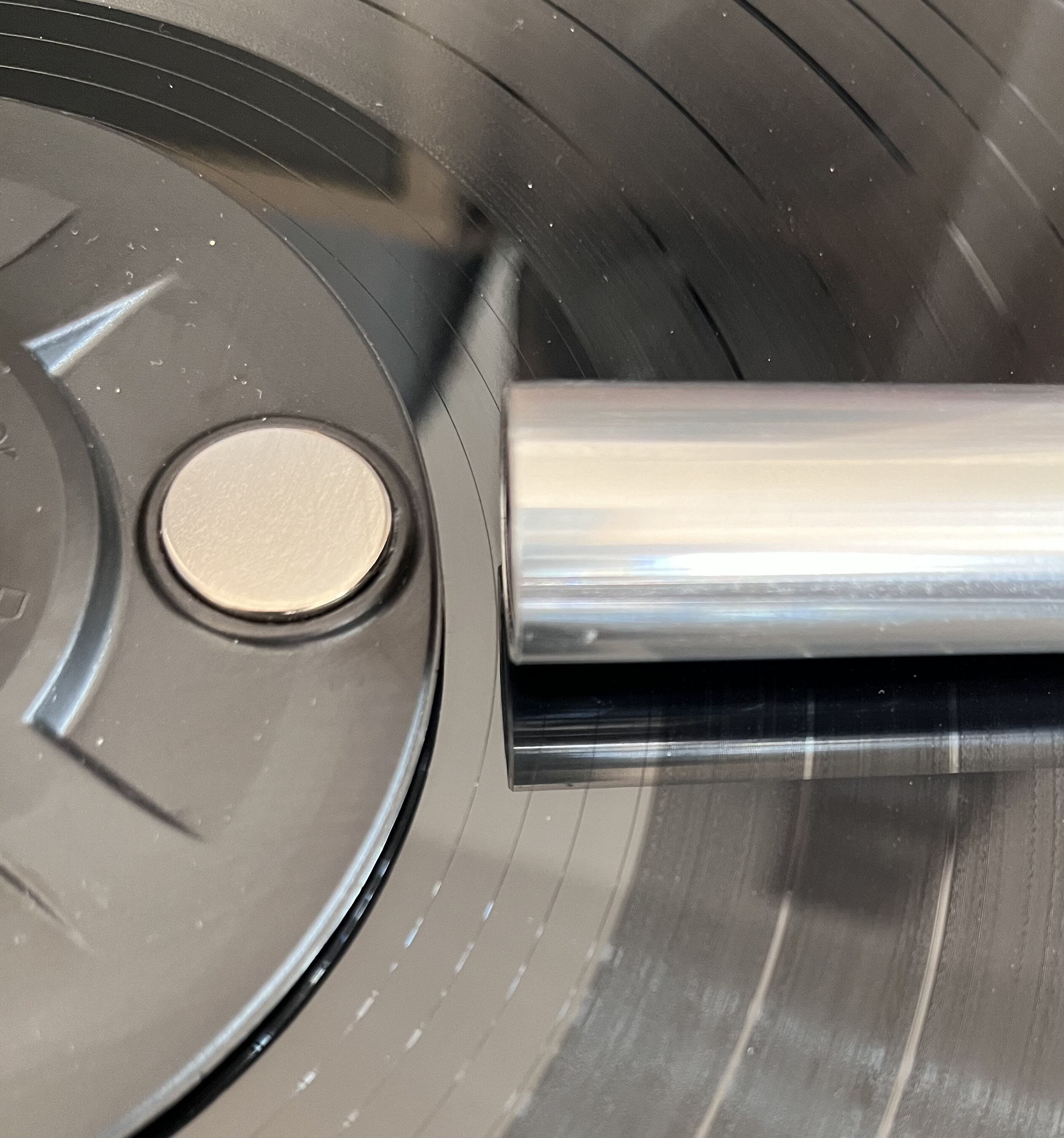 Tu też jest z 5mm luzu i faktycznie nie odsysa tego kawałeczka, ale zaraz odparowuje. Ale co mnie zaskoczyło, ta płyta ze zdjęcia to jakaś Czechosłowacka płyta z koncertem Vivaldiego i albo jest jakaś cieńsza, albo etykieta śliska, bo przy odkurzaniu kilka razy kręciła się skokowo, i ten talerzyk od dołu się kręcił, a górny przeskakiwał na kolejne magnesy. Pierwszy raz się z tym spotkałem.