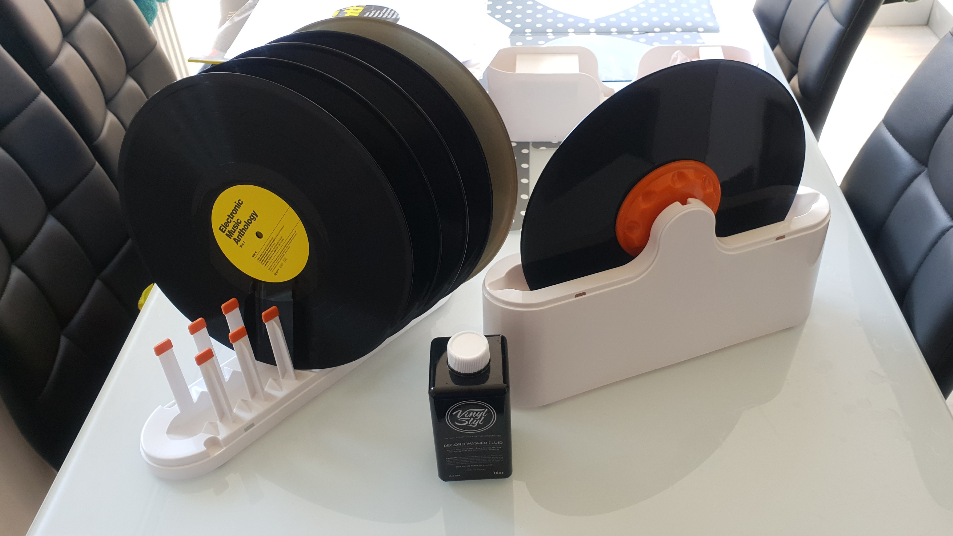 Polecam pozostawienie płyt na suszarce do znacznego wyschnięcia, ewentualnie wytarcie kawałka rozbiegówki, gdzie grawitacyjnie, w najniższym punkcie, zebrała się resztka płynu. Załączony do zestawu płyn jest ogólnie dobry, ponieważ spełnia swoje zadanie, ładnie pachnie ale pozostawia trochę zacieków. Jednak wspomniana wcześniej "mikstura" zdaje się lepiej sprawować, mimo uciążliwego zapachu. Po pierwsze zacieków w zasadzie nie ma albo są naprawdę niewielkie, po drugie zmniejsza się elektrostatycznośc nośnika.