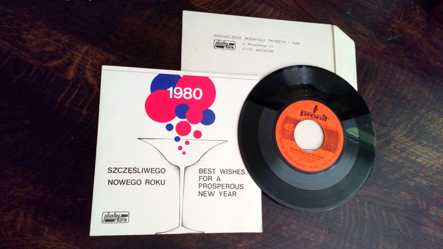 Jeden z prezentowych gadżetów doby PRL-u, z PlastoFarbu rodem. Na A pierwsza strona LP Jana Wojdaka i Waweli "Zostań z nami melodio" (1979), na B również pierwsza z LP "Są takie dni w tygodniu - Kolorowy film" Urszuli Sipińskiej (1980). Płyta z tłoczni i z labelem Pronitu, ale koperta z grubego kartonu, niczym z amerykańskich wydań. Dzisiejszy zakup z pchlego targu, wyraźnie niegrany egzemplarz za całe 20 zł
