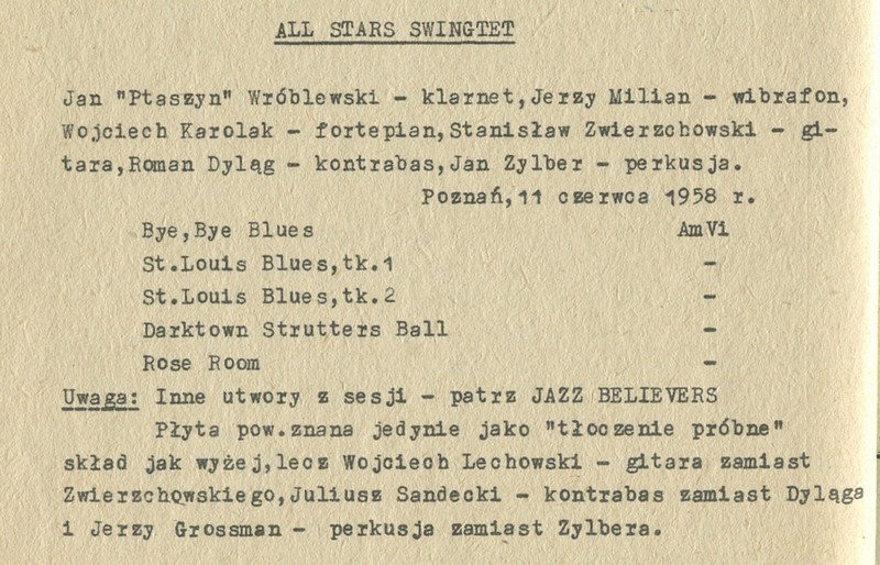 W pierwszej „Polskiej dyskografii jazzowej 1955 – 1972” autorstwa Marka Cabanowskiego i Henryka Cholińskiego (prezentowanej na stronie 10 tematu http://www.winyl.net/viewtopic.php?f=18&t=2367#p29394) znalazłem informacje których skany przedstawiam poniżej: