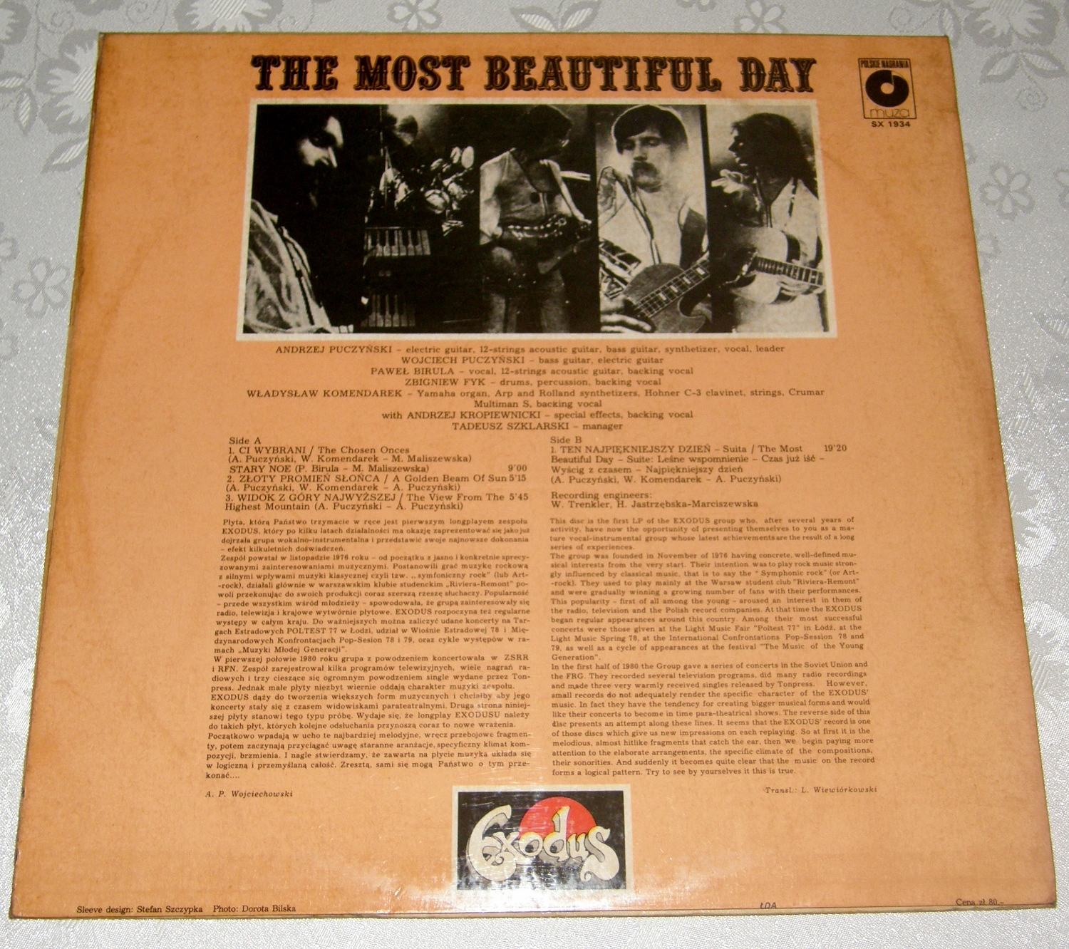 Mam wielki sentyment do tej płyty. Ot taki polski odpowiednik Yesów. A dla fanatyka twórczości Brytyjczyków, za jakiego nieskromnie się uważam, każdy, kto próbował grać podobnie lub ich naśladować (lepiej lub gorzej) zawsze zwracał moją uwagę. Tak też i było z "Najpiękniejszym Dniem" Exodusu. Płytę zakupiłem chyba w 1981 roku i mam ją do dziś stojącą na półce tuż za dyskografią Yes.