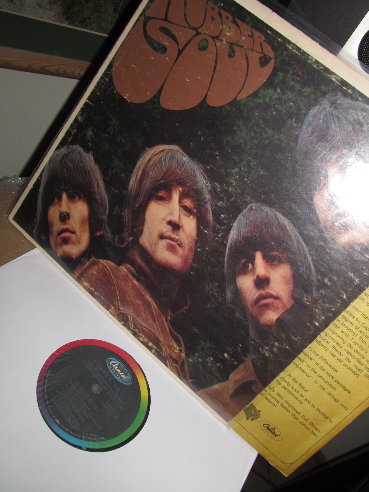 Rubber Soul, The Beatles, UK Parlophone, fota z bazy z innymi bitlejsami, ale dokładnie ta płyta się kręci, jakiś 1 Press zdaje się czy cóś? Akurat porównuję z Capitolem US.. zaraz nextem.