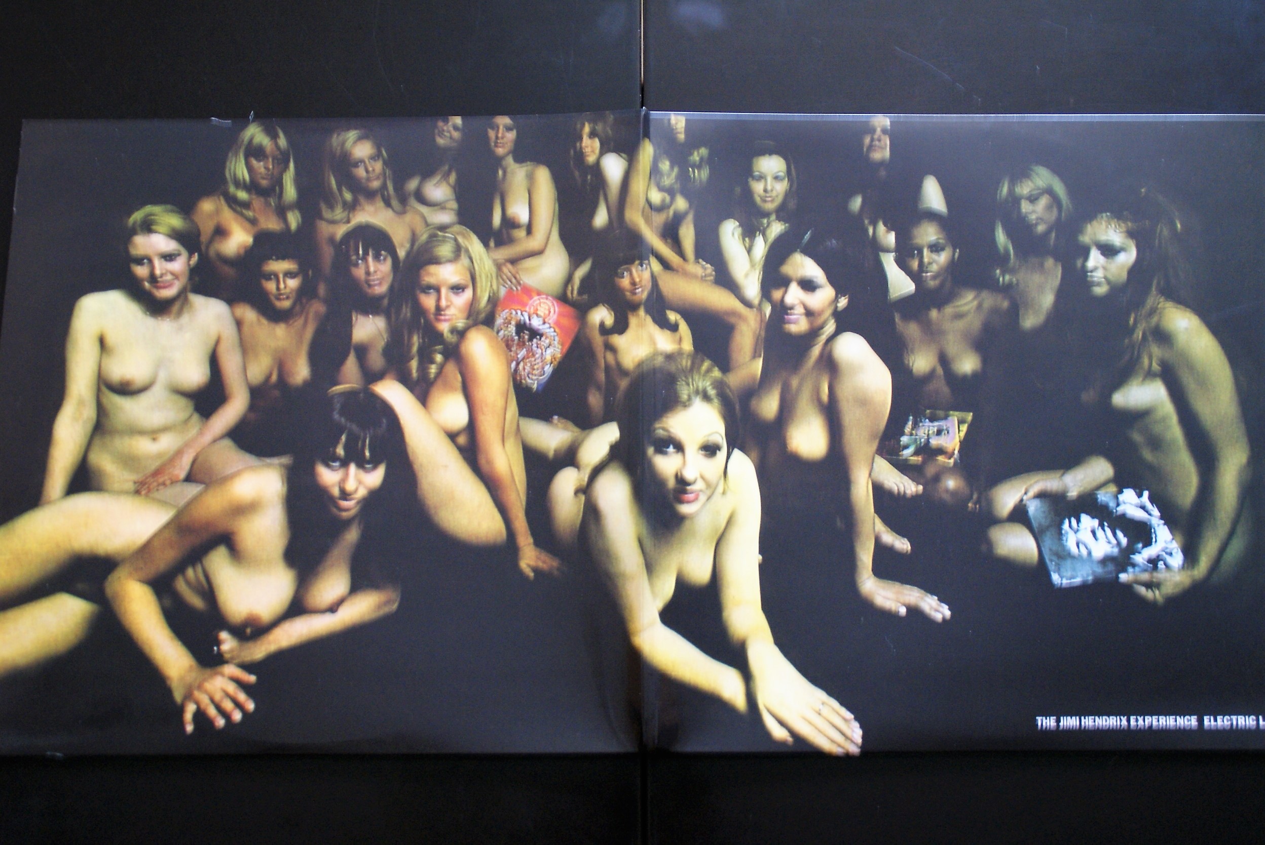 Jimi Hendrix "Electric Ladyland" - w wersji na rynek brytyjski wydanej przez Track Records - wewnętrzna strona gatefold z 19-ma nagimi modelkami. Duże "nasycenie" krągłości na jedną okładkę. W późniejszych latach Die Toten Hosen na swoich płytach np. "Reich & Sexy" stosowało podobny "patent", jednakże z tą różnicą, że członkowie zespołu pozowali razem z modelkami.