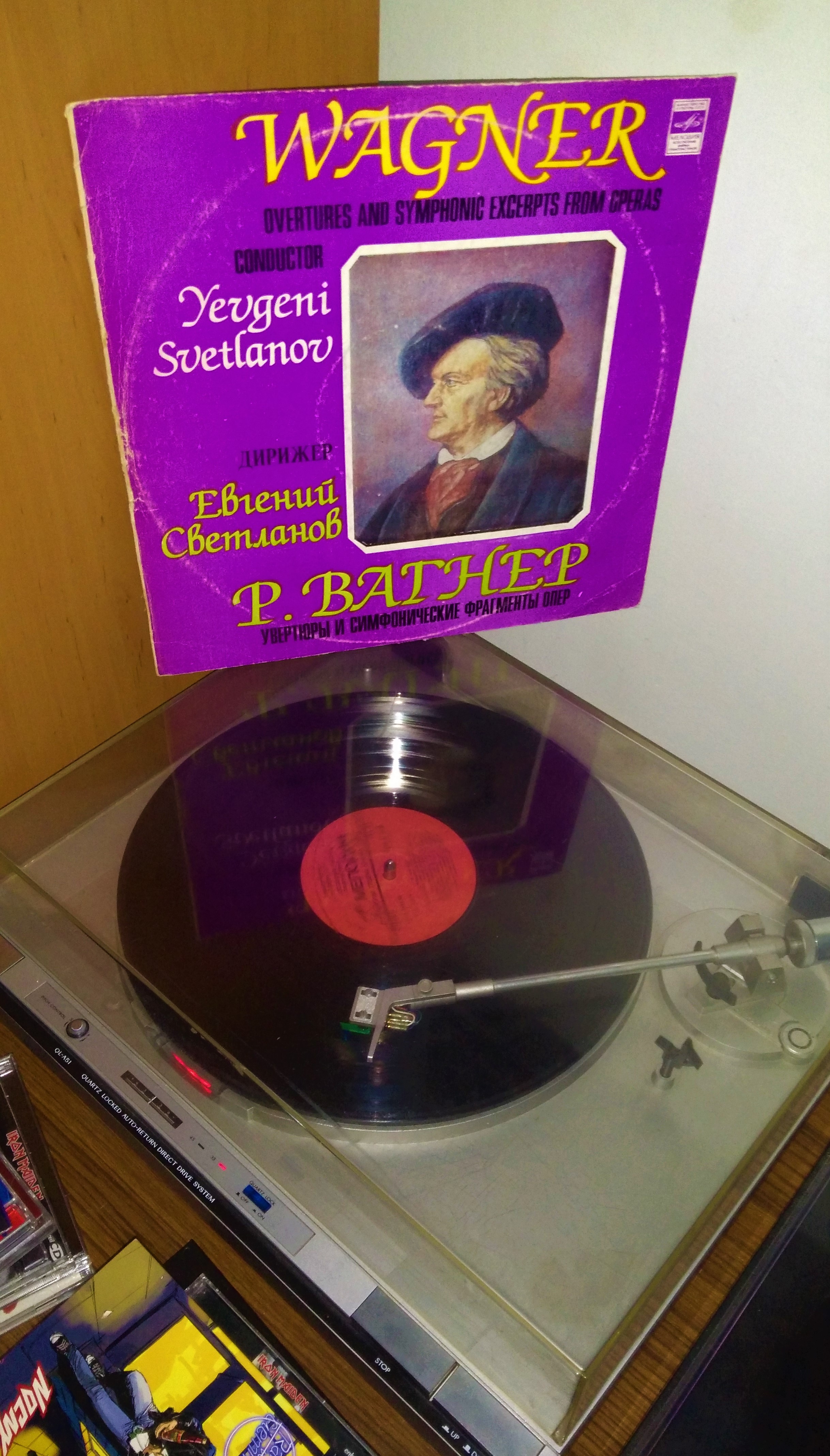 Richard Wagner - Uwertury i symfoniczne fragmenty oper. Orkiestra Symfoniczna ZSRR, dyrygent - Yevgeni Svetlanov, 1976, Melodia. Fajna płyta, tylko ten wesoły kolorek z okładki trochę daje po oczach i nie za bardzo pasuje do klimatu :D