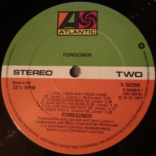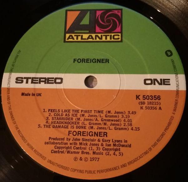 Foreigner - Foreigner (1977 / 1977, UK, M/Print) https://www.discogs.com/Foreigner-Forei ... e/15717482