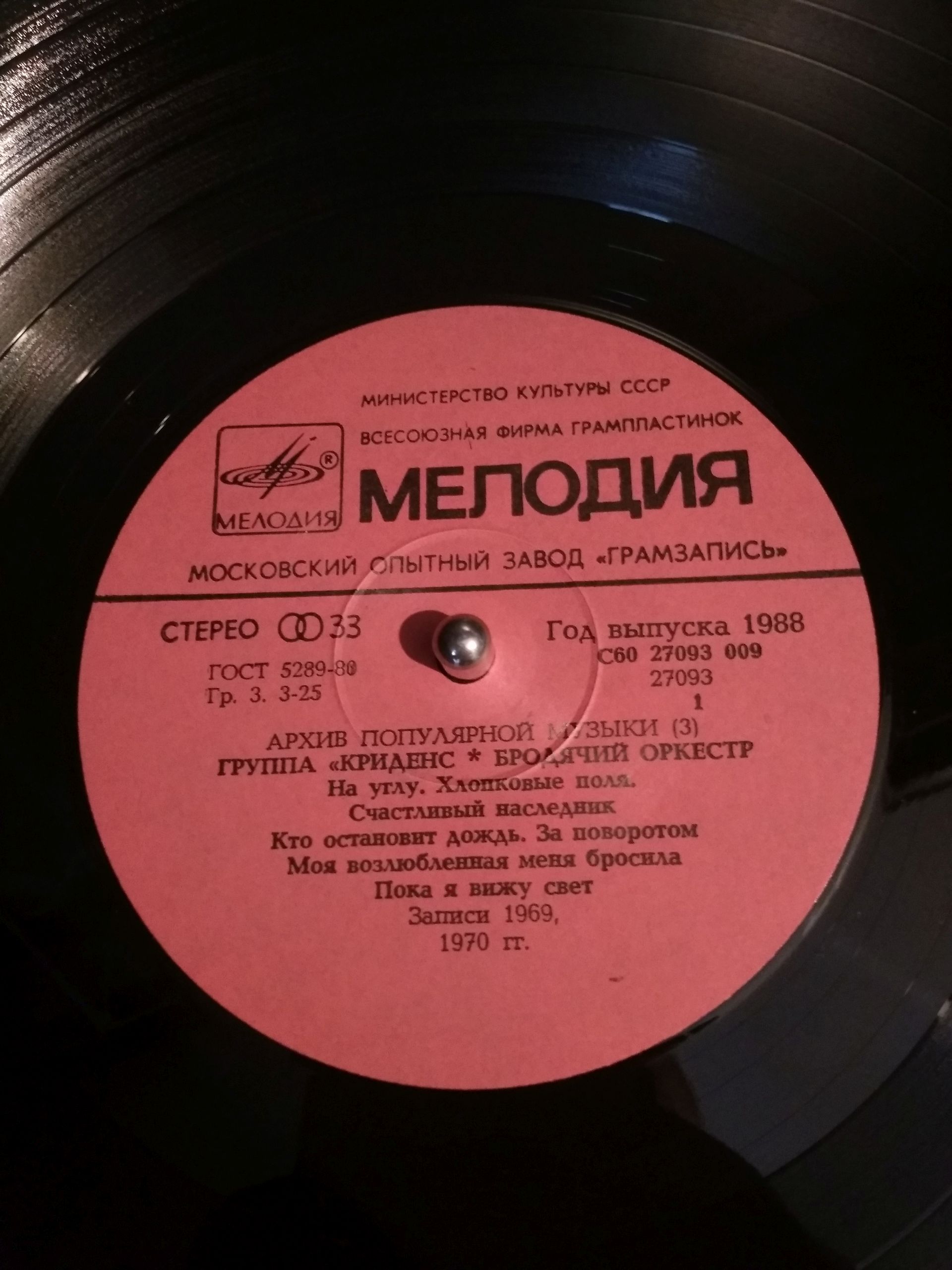 A po powrocie do domu włączyłem sobie Kredensów do obiadu. Jest to wyjątkowy egzemplarz tej składanki - wytłoczony w moskiewskich zakładach Melodii. Nigdy nie miałem do czynienia z albumem wytłoczonym w innym "zawodzie" niż aprielewskim lub leningradzkim (oraz ryskim, jedna - dwie płyty). Akurat kredensowska składanka była tłoczona chyba przez wszystkie tłocznie Melodii zlokalizowane w całym obszarze ZSRR... od Rygi aż po Taszkient i Tbilisi. Melodia miała jeszcze tłocznie w Baku i Tallinie (ale tam tylko kasety były produkowane).