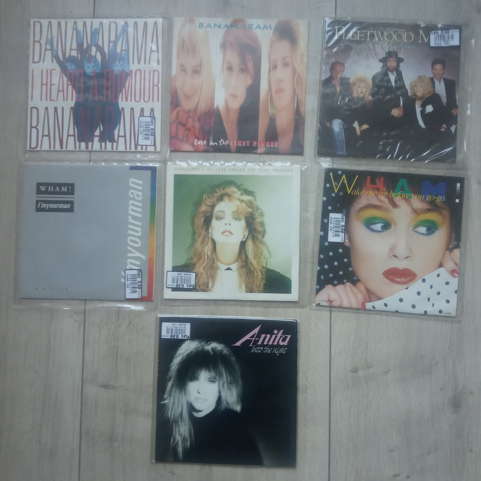 mikrokolekcję singli. Wszystkie w stanie M lub EX+ w foliowych kopertach zewnętrznych. Wham były dwie w jednej kopercie więc zapłaciłem jak za jedną. ;) Anity nie znam, ale plakat z wokalistką zrobił na mnie dobre wrażenie. :wink: Były też Madonny i coś tam jeszcze, ale porysowane to nie brałem chociaż teraz się zastanawiam czy nie wrócić po resztę biorąc pod uwagę cenę całe 50 eurocentów za sztukę. :think: