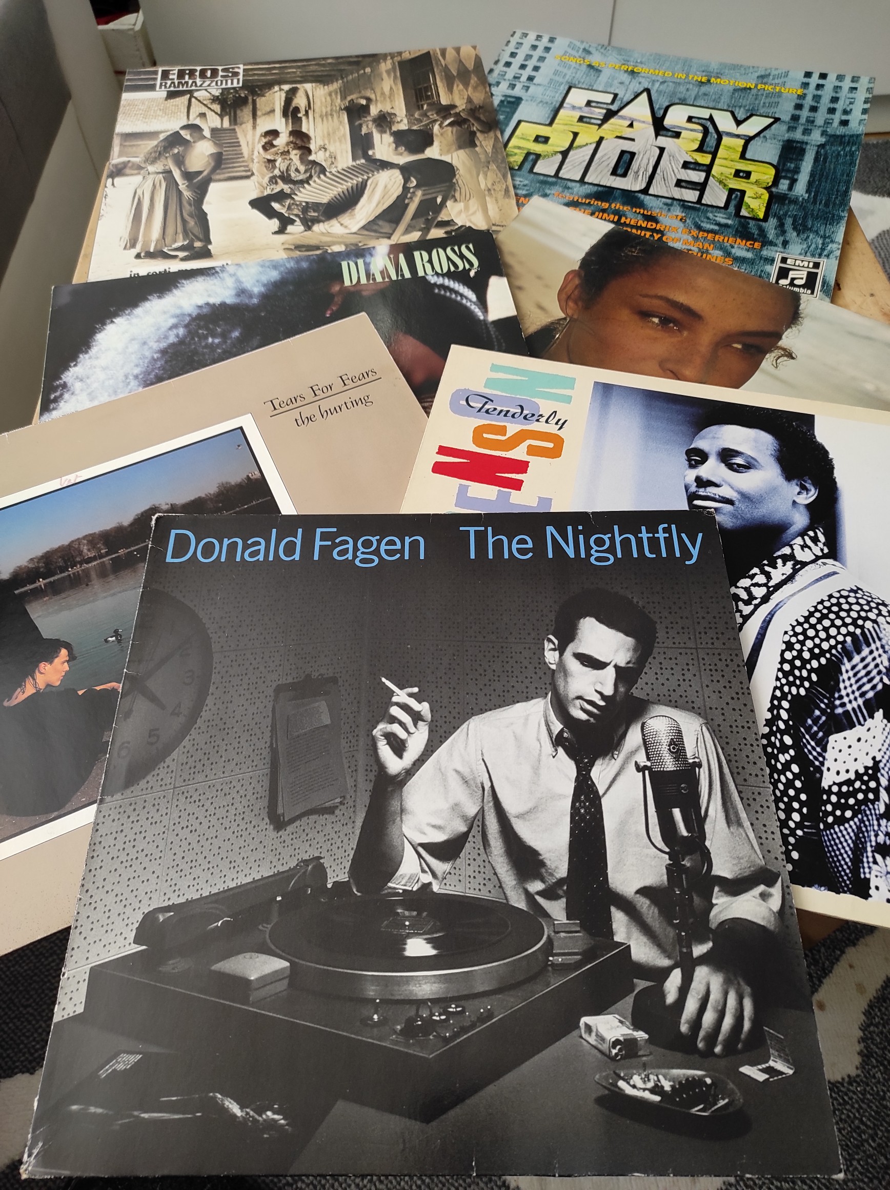 Dzisiejsze zdobycze z pchliego targu. Trochę przypadku, szczęścia. :mrgreen: Ogólny stan płyt dobry, bez rys, jedynie to tony kurzu. Facet za bardzo nie wiedział chyba co sprzedaje. Dawno takiego kompletu nie ustrzeliłem za takie pieniądze. :D Za wszystko zapłaciłem 60 PLN.