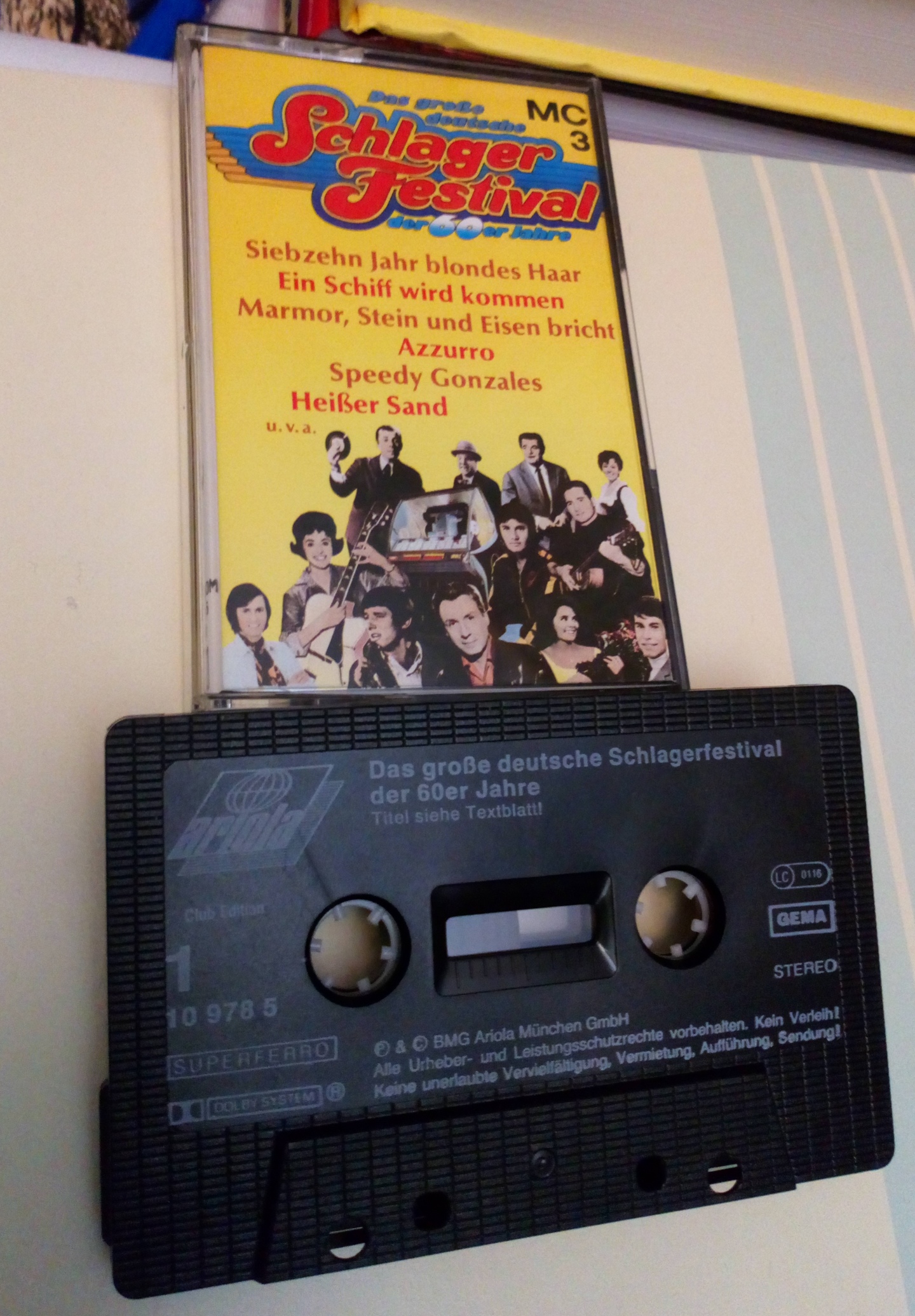 Kupiłem wczoraj, dla kilku piosenek Lys Assii i za całe 8 zł, 4-kasetowy składak z niemieckimi szlagierami, wydanie klubowe Arioli, pewnie lata 80. Bardzo dobra jakość dźwięku, na obudowie kaset info, że taśma superferro.