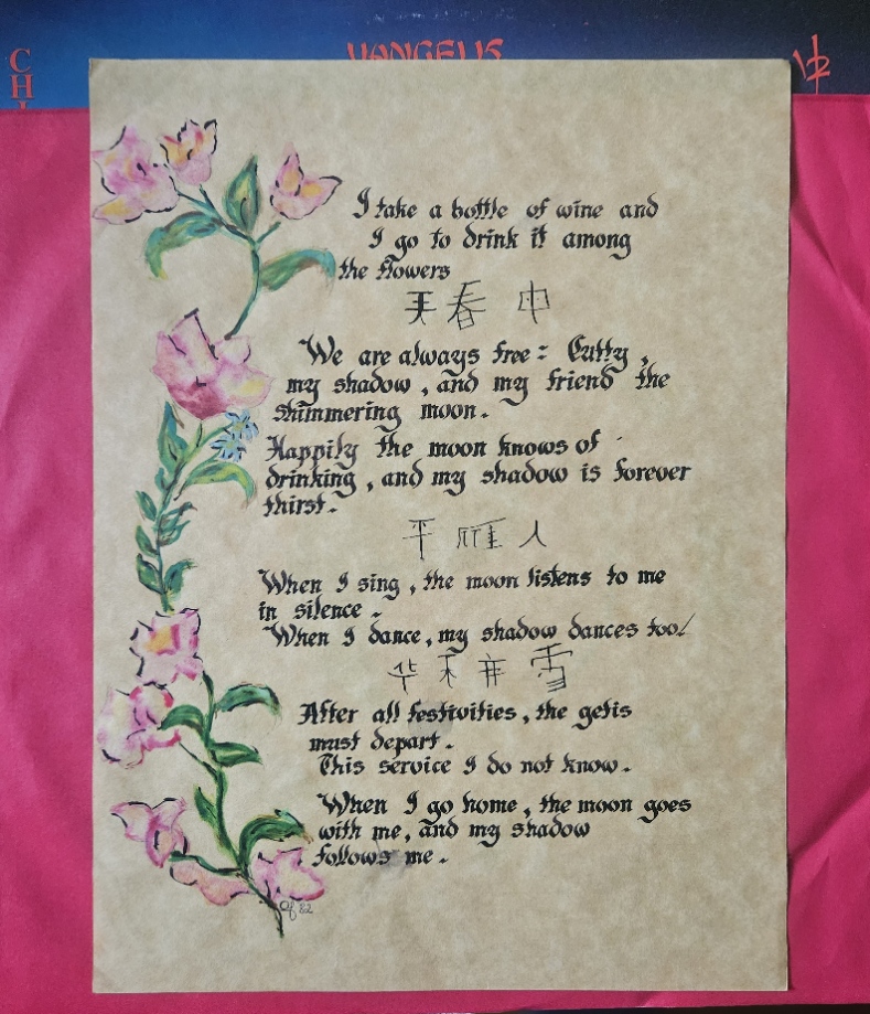 Takie coś znalazłem w płycie Vangelisa "China". Na czerpanym papierze wykaligrafowany ręcznie wiersz.