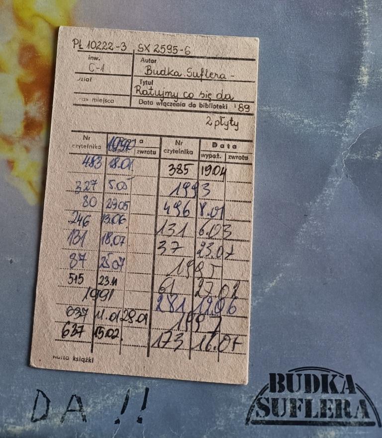 Mój egzemplarz ''Ratujmy co się da'' Budki Suflera też ma przeszłość biblioteczną: