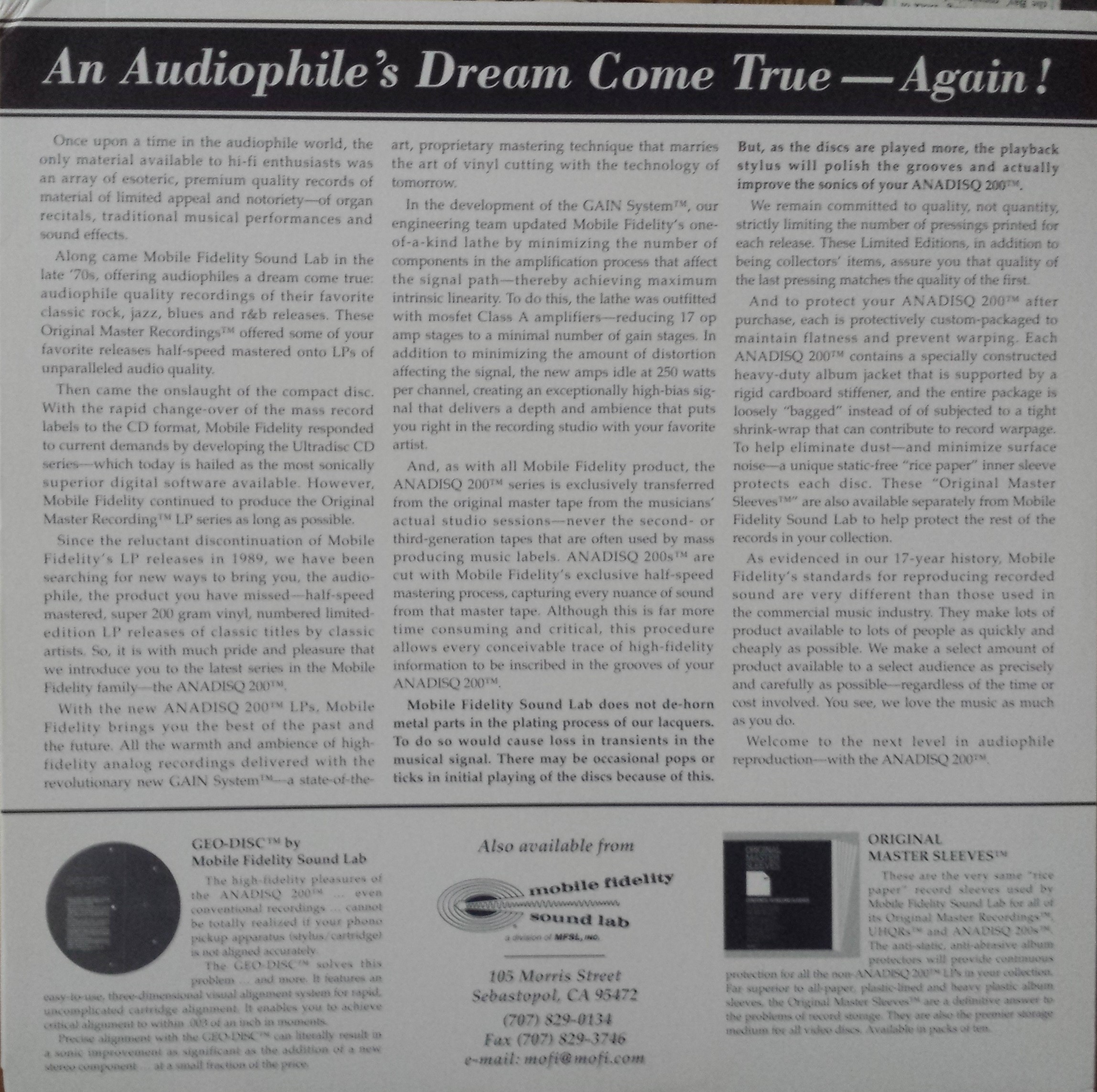 Kolejny MFSL w mojej kolekcji (jeden z dwóch, które przybyły dziś pocztą), spodobało mi się