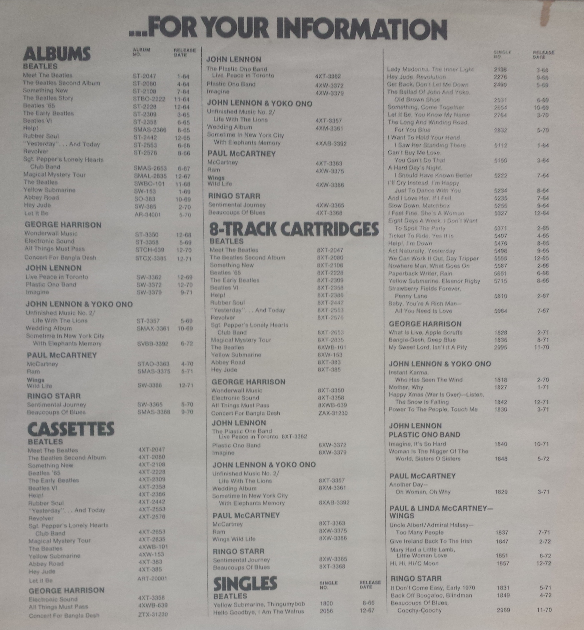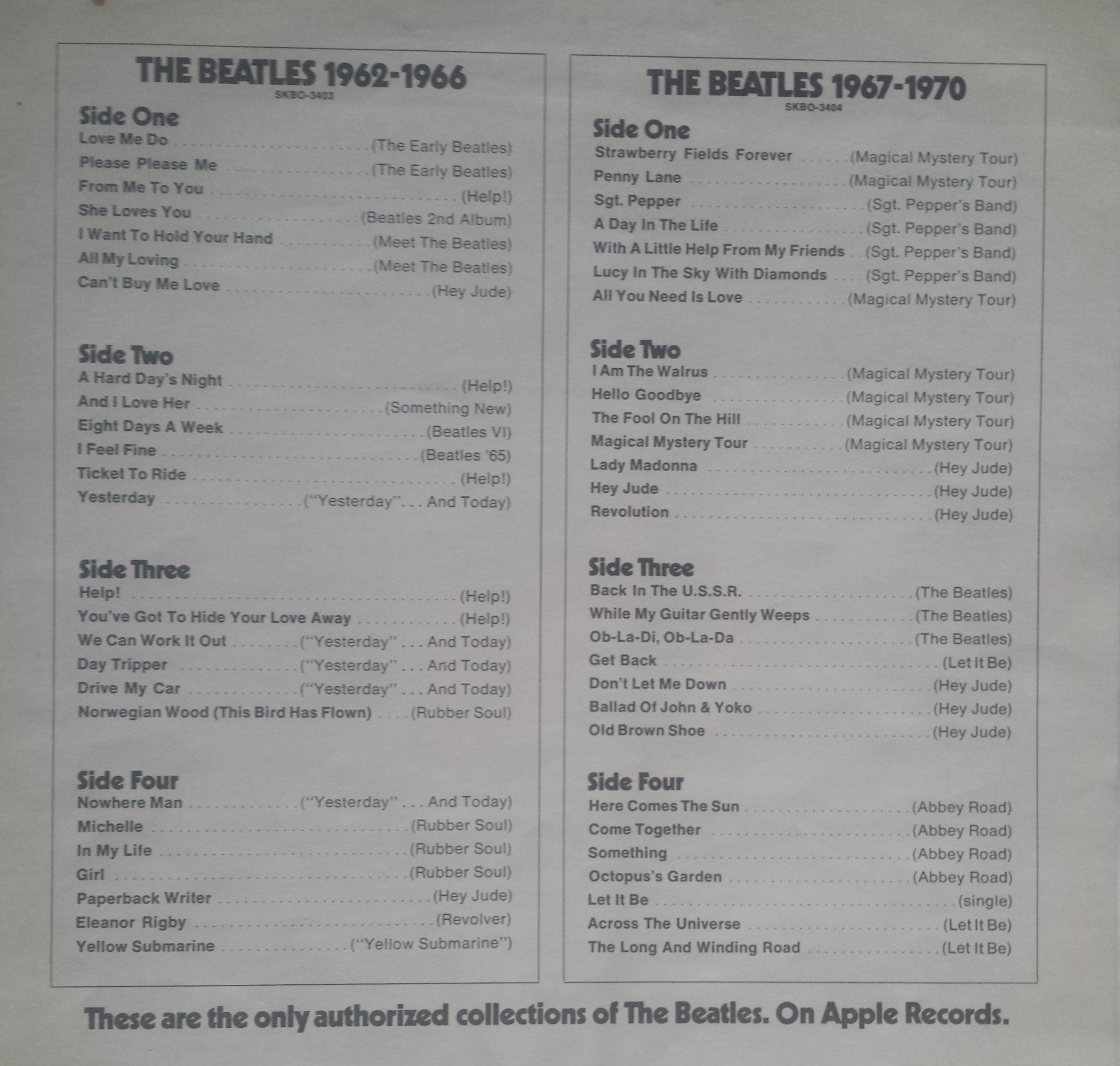 Ta koperta musiała być z lat '70tych, bo nie zawiera listy oryginalnie wydanych albumów na szpulach. Zresztą, na początku jest o kompilacjach Beatli więc tym bardziej pasuje