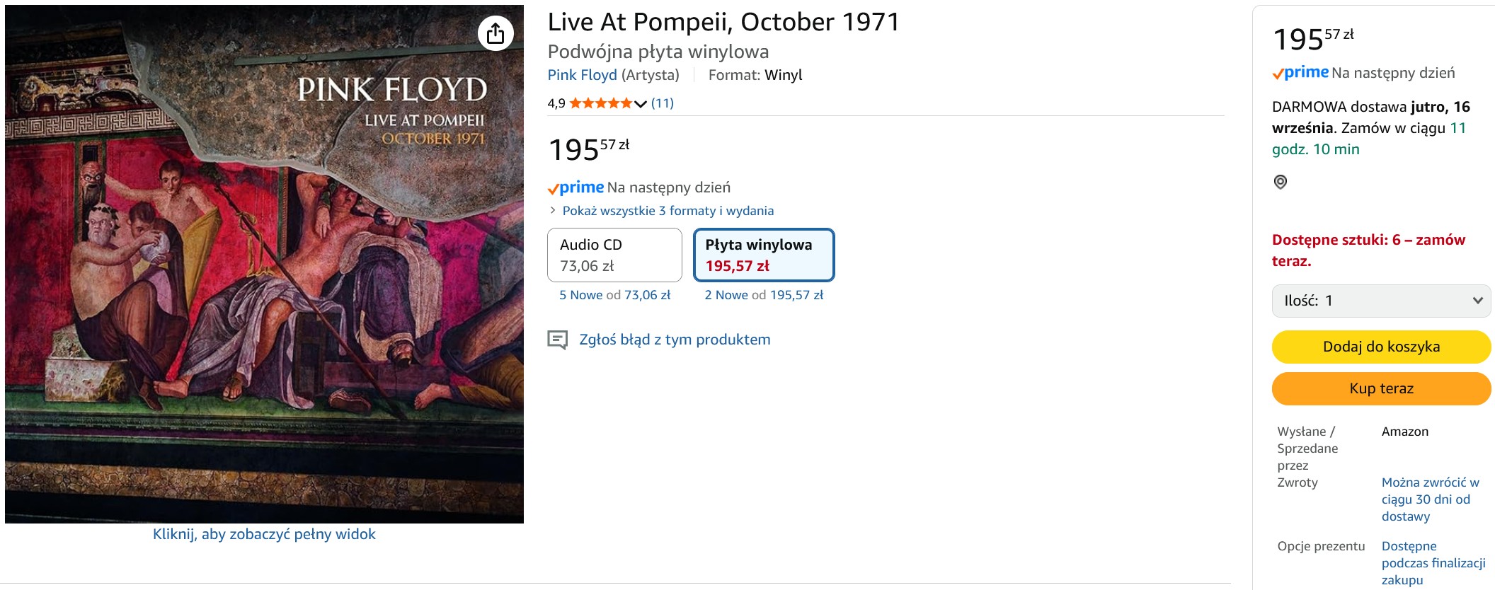 Pink Floyd Live At Pompeii, October 1971 2LP za 95 PLN