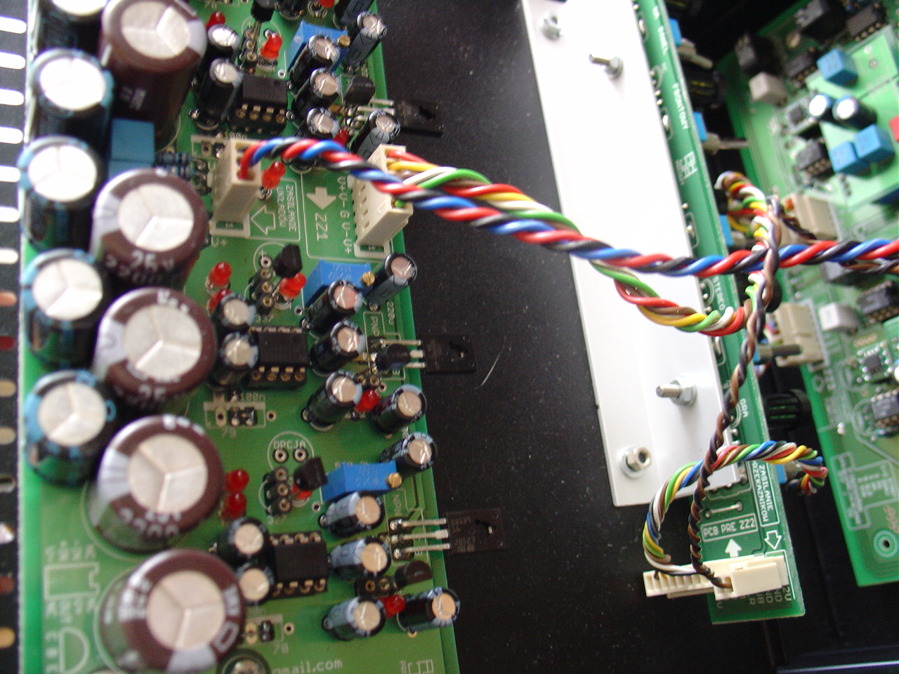 5.Wypinamy dla spokojności 3 wtyczki: 2 pinową z pcb z ledami, 5 pinową i 3 pinową z pcb stabilizacji.