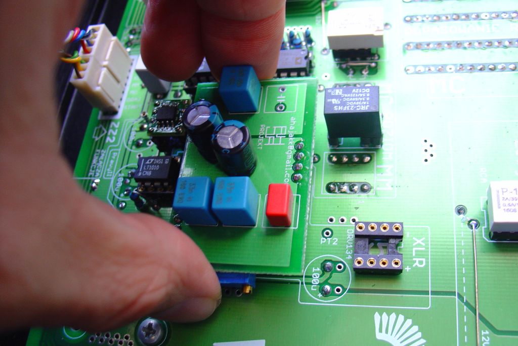 8.Bierzemy drugi typ korekcji, osadzamy na podstawkach, powoli dociskamy od góry by równo weszły. Tak osadzamy oczywiście obie płytki, po jednej na kanał.