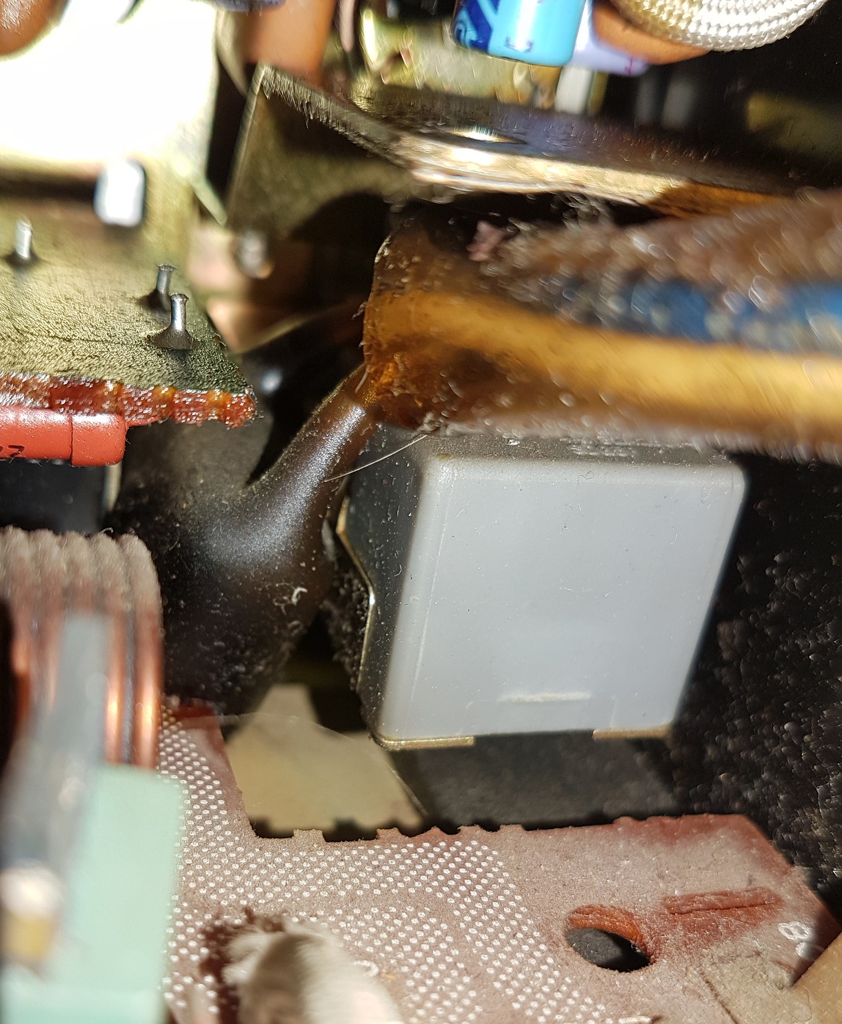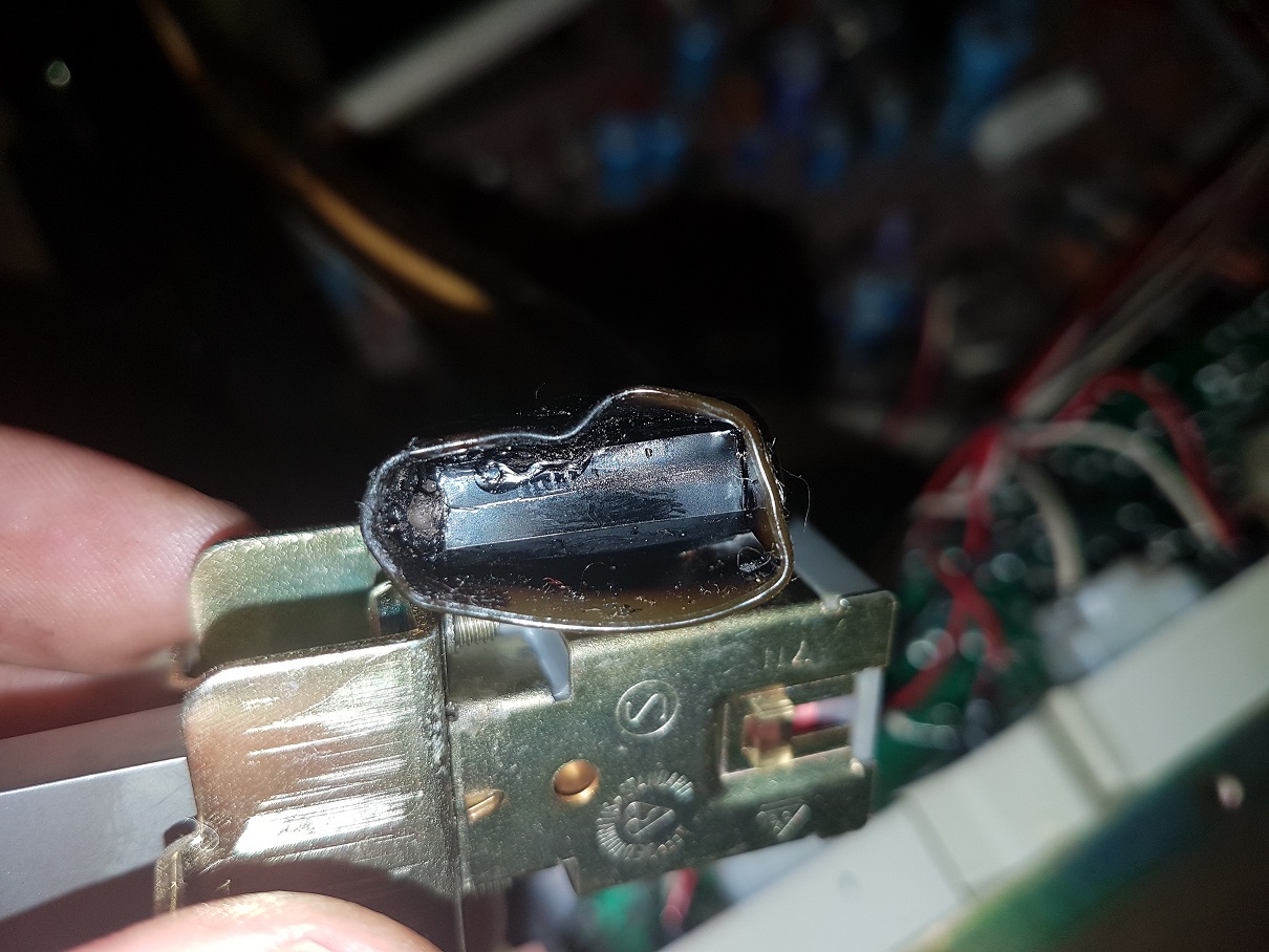 Foto wnętrza RC-820, oraz "bohatera" mojego problemu, zapewne chodzi oto coś ciemne przy lewej stronie włącznika?
