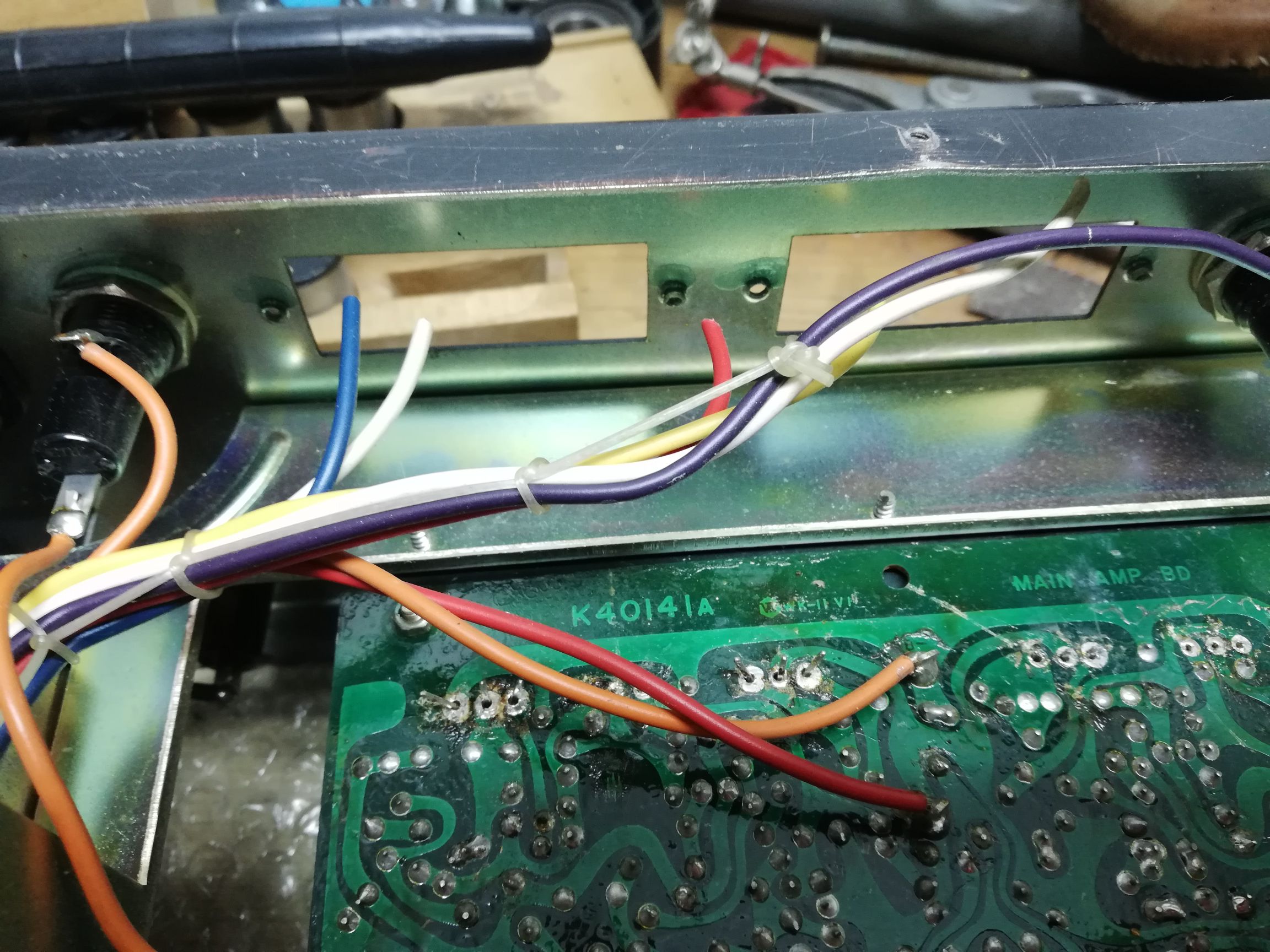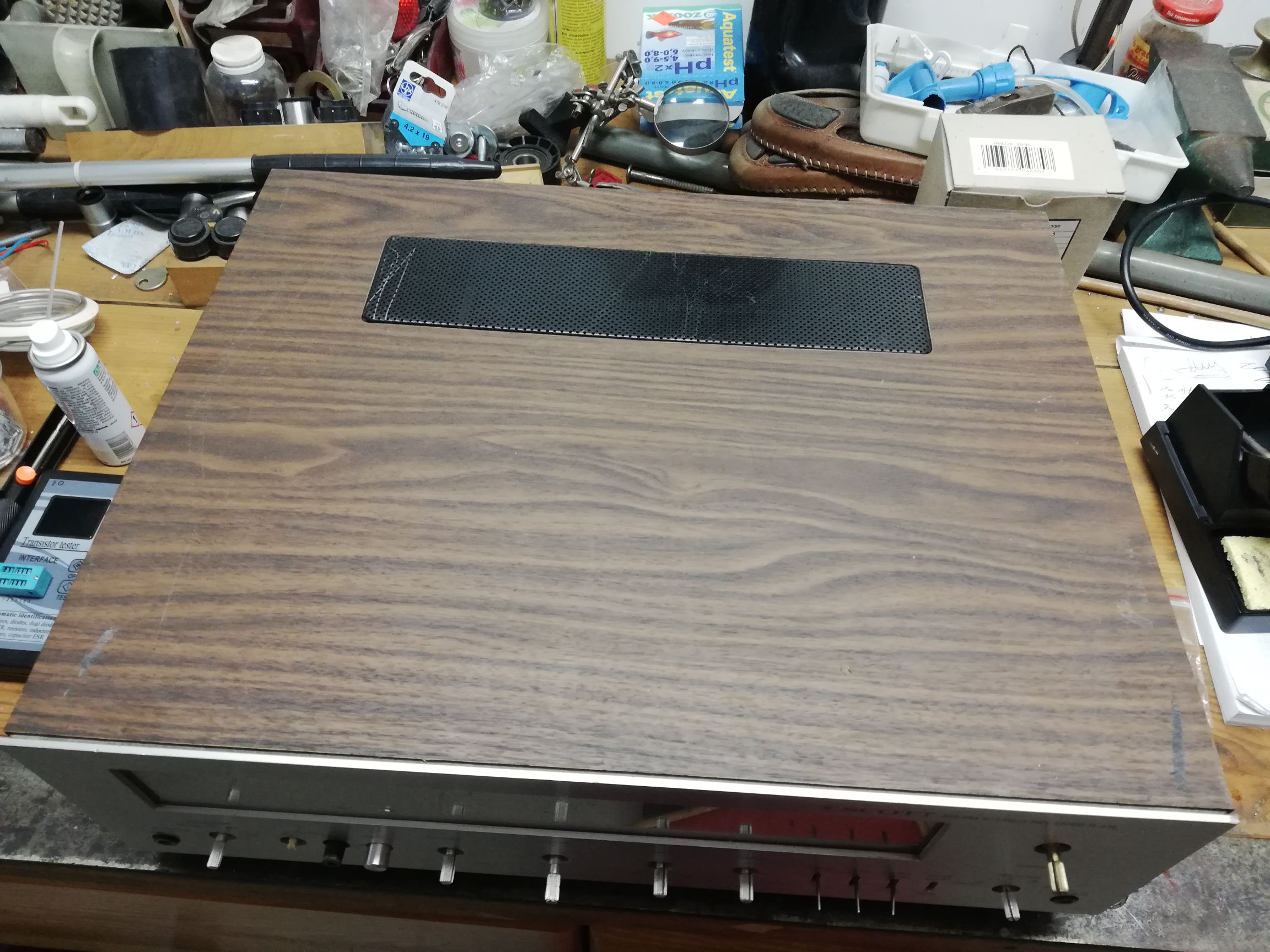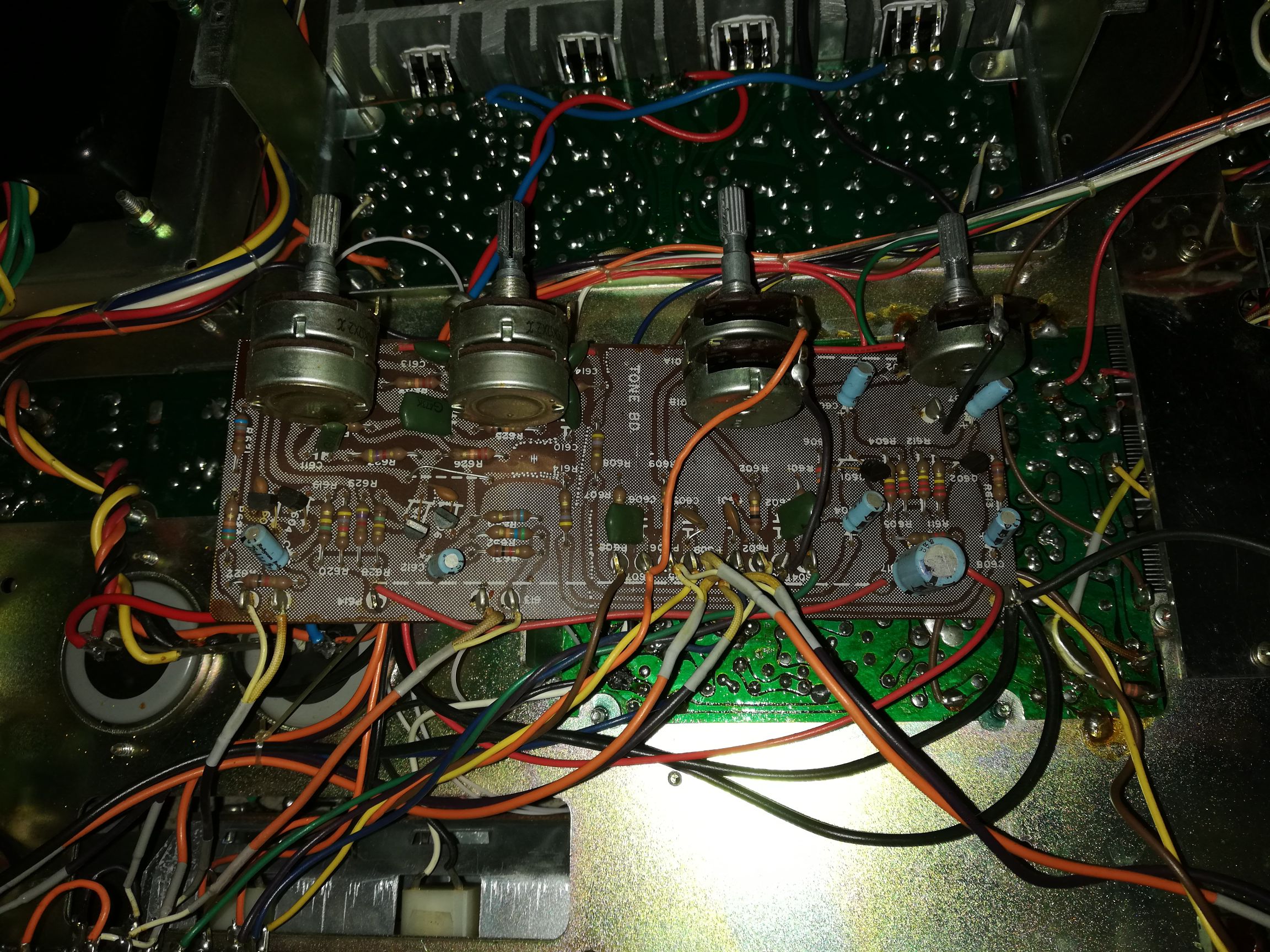 Elektrolity wymieniłem wszystkie oprócz płytki AM, Żarówki wymienione, schemat podaje żarówki 12v nad wskaźnikami ale zasilanie jest 7v więc ich nie widać, wstawiłem tam zarowki 8v... uszkodzony był jeszcze wskaźnik sygnału skala się obsunęła i opierała się na wskazówce... Wymieniłem z dawcy