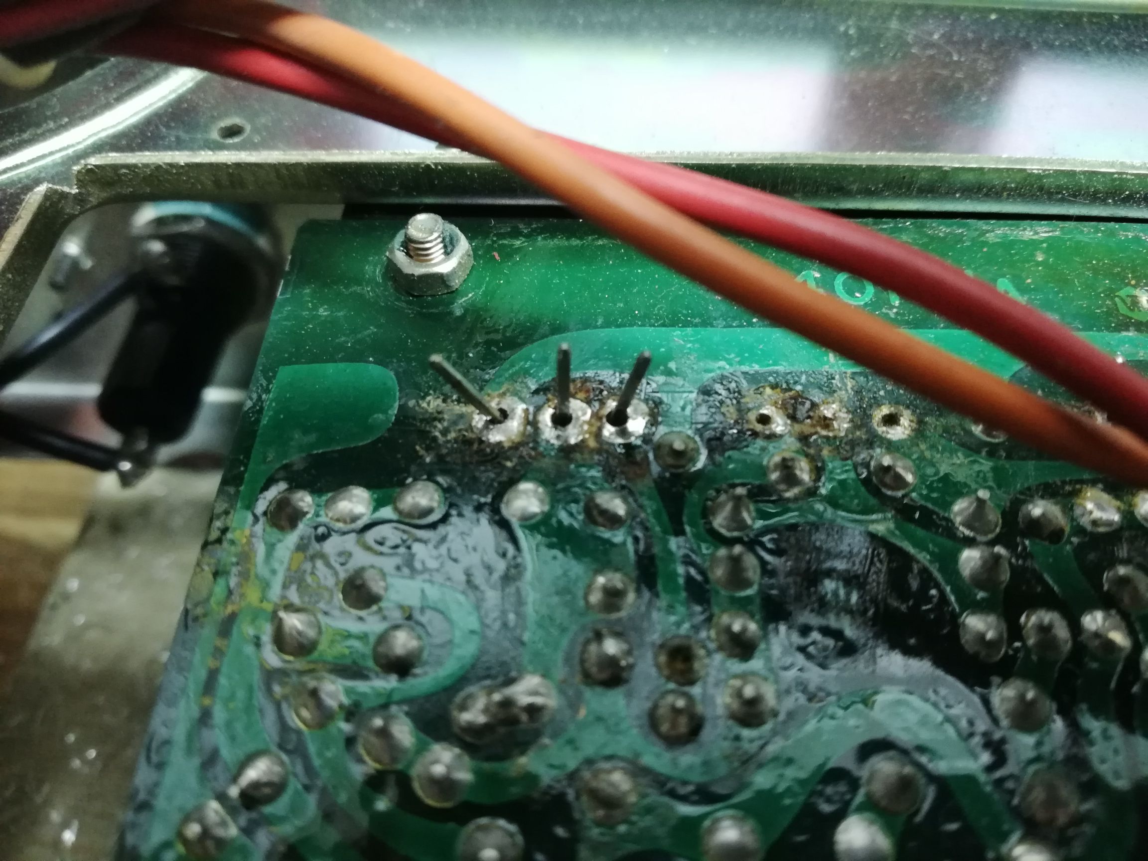 Demontaż płytki BD, zrobiłem kilka zdjęć i opis przewodów żeby to później poskładać, płytka siedziała na 16 kołkach