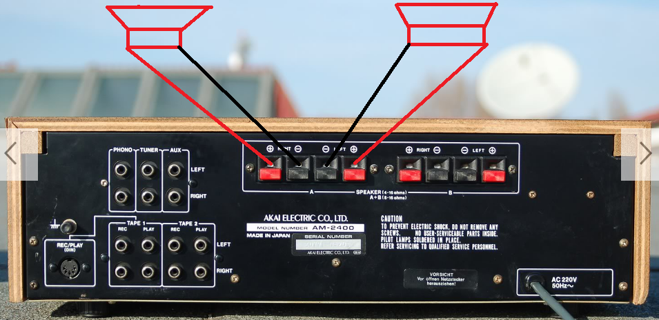 Posiadam wzmacniacz AKAI AM-2400 oraz kolumny ITT HYPERION H3-75 (4 Ohm). Do którego wejścia podłączyć komputer kablem jack - 2cinch (tylko w celu sprawdzenia czy wszytko działa, jeśli tak będzie to gramofon będę kupował w najbliższych dniach)? Czy dobrze podłączyłem kolumny 4 Ohm? Wolę się zapytać wcześniej, żebym nic nie popsuł. Sprzedawca kolumn pooznaczał mi przewody i odizolował tak aby pasowały do tego wzmacniacza.