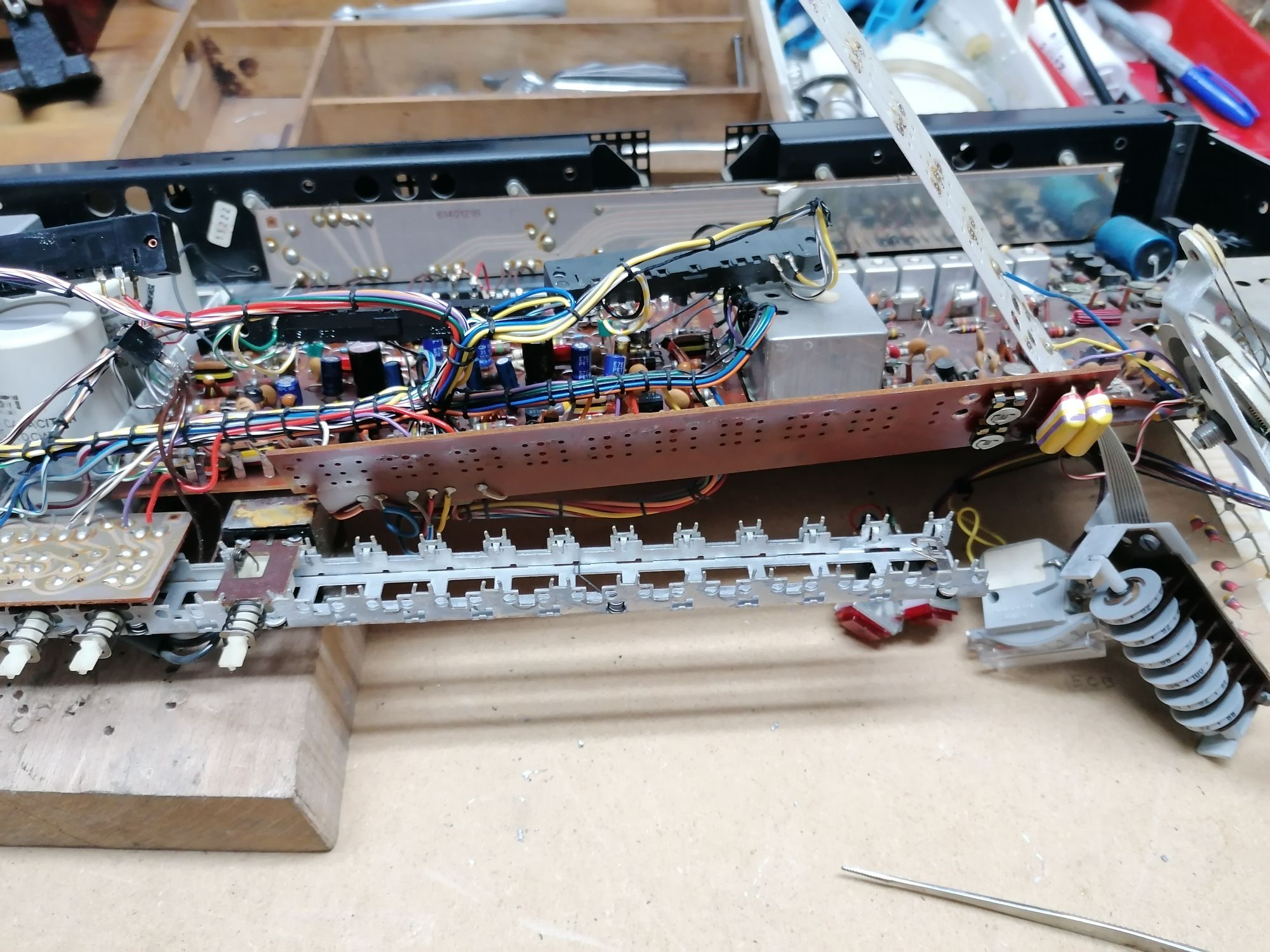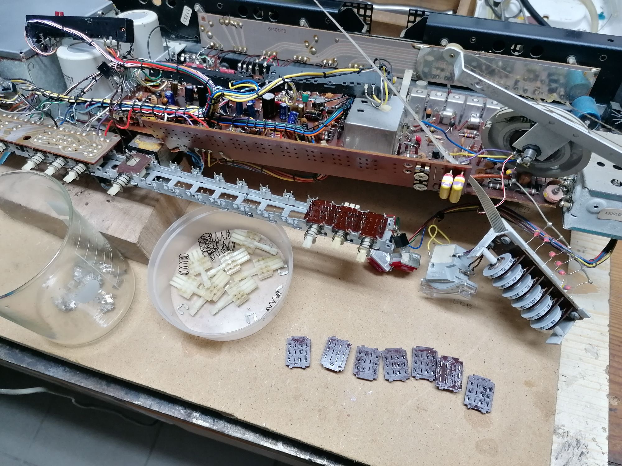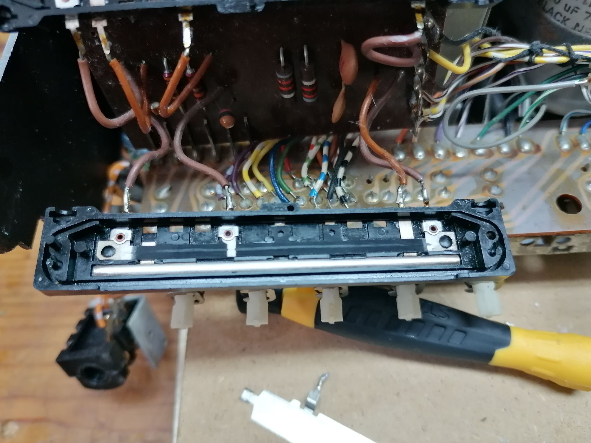 Niestety przełączniki zapyziałe, radio działa tylko na fm, przełączniki1-6 nie działaj prawidłowo, do czyszczenia, będzie zabawa.... Żeby się dostać do przełączników trzeba odlutować sporo materiału...