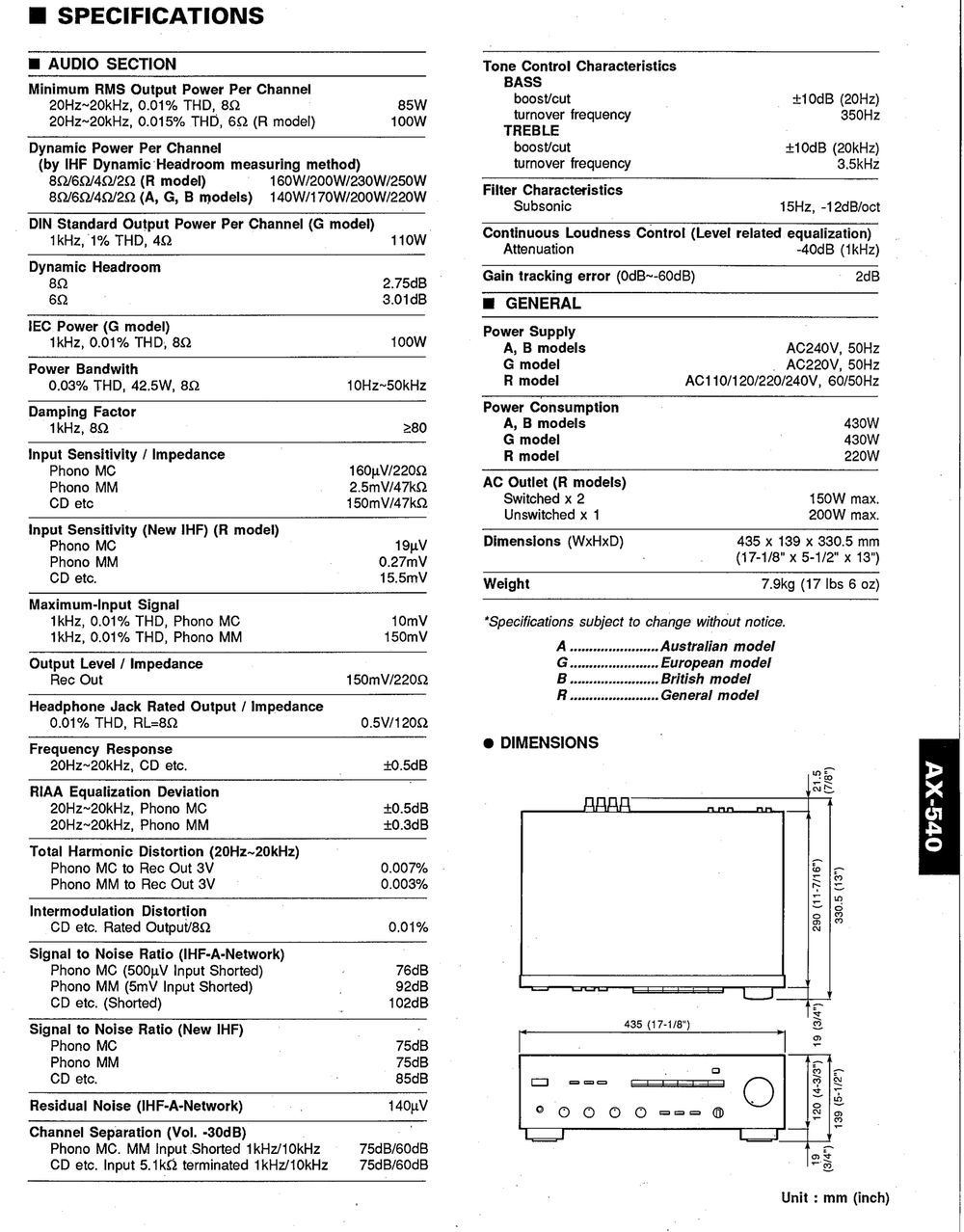 Specyfikacja techniczna - Yamaha AX-540