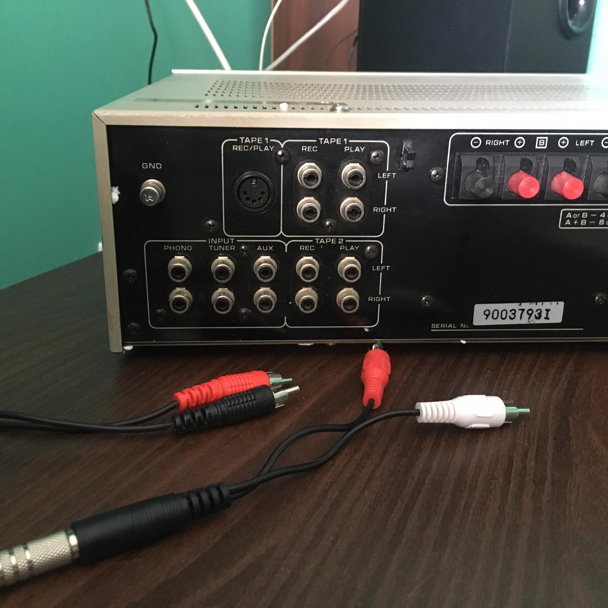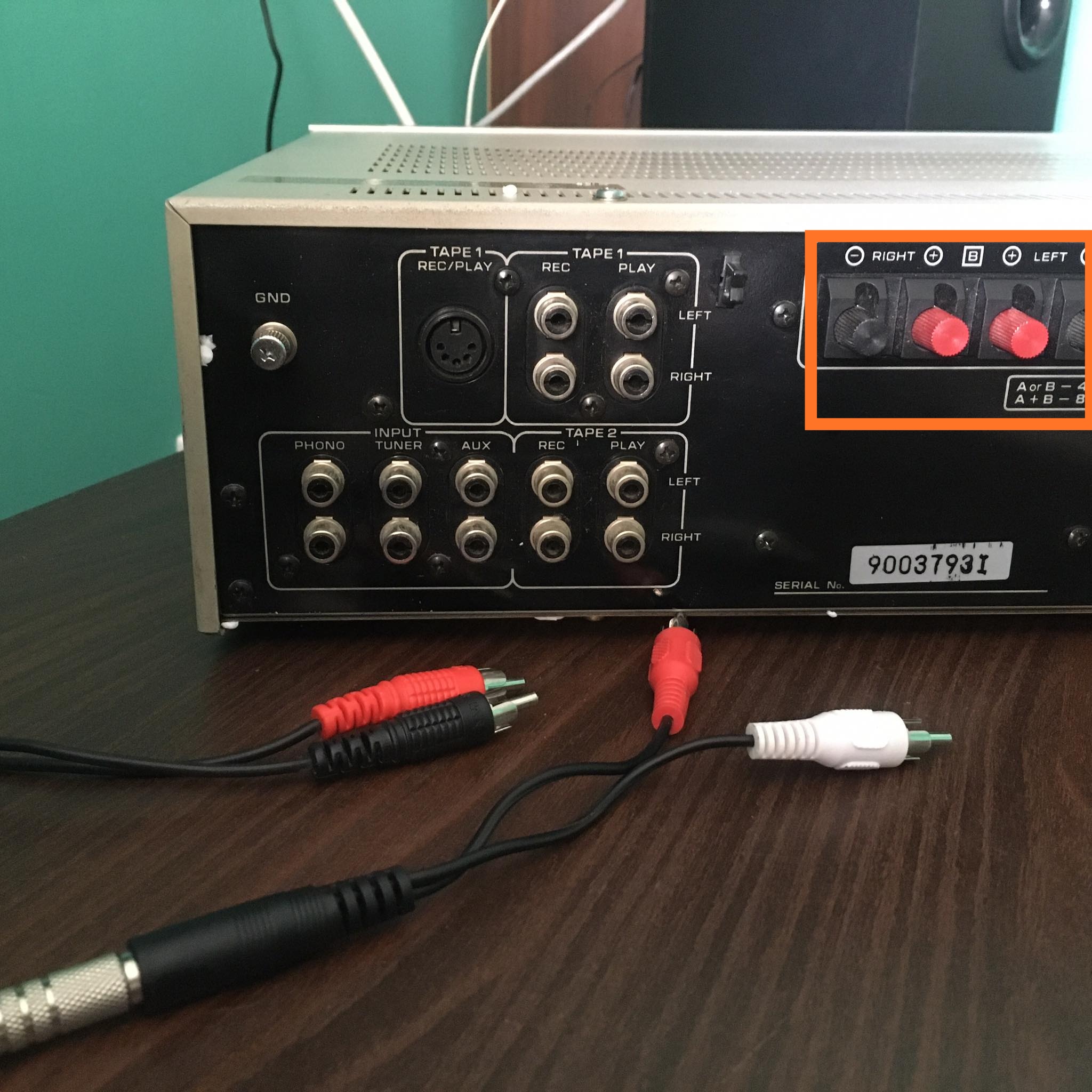 Kupiłam nowy wzmacniacz Hitachi Ha 5700. Nie wiem, jak podłączyć go do kolumn (dołączam zdjęcie). Na zdjęciu po lewej to okablowanie z gramofonu, a po prawej kolumnowe. Wcześniej mieliśmy podłączone do przedwzmacniacza Vivanco (załaczam fotkę) i wszystko grało. Proszę o pomoc, jak podłączyć wzmaka do kolumn ponieważ metodą prób i błędów jakoś nie idzie