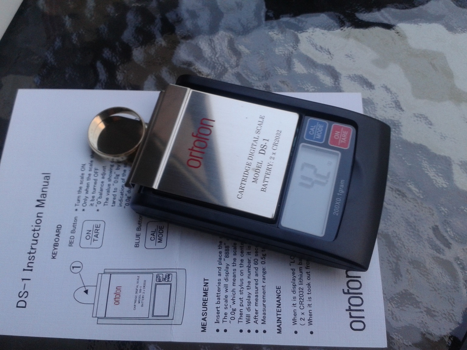 Następnie w DS-1 szalka jest tak ukształtowana, że kładąc wagę na talerzu szalka znajduje się dokładnie na wysokości płyty, przez co pomiar jest miarodajny i nie ma przekłamań. Zrobiliśmy z kolegą taką nakładkę z lekkiego tworzywa sztucznego na szalkę mojej starej wagi jubilerskiej. Nagrzaliśmy opalarką, nadaliśmy kształt, przykleiliśmy ultracieńką taśmą dwustronną i niestety moja waga jubilerska kupiona na znanym portalu aukcyjnym „wariuje” i uniemożliwia pomiar. Nie można jej wytarować. Tak jakby widziała ciało obce na szalce i nie chciała współpracować. Istnieją jeszcze wagi analogowe. Są zdecydowanie tańsze od Ortofona. Jest to jakaś alternatywa.